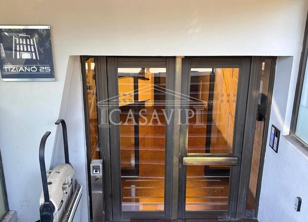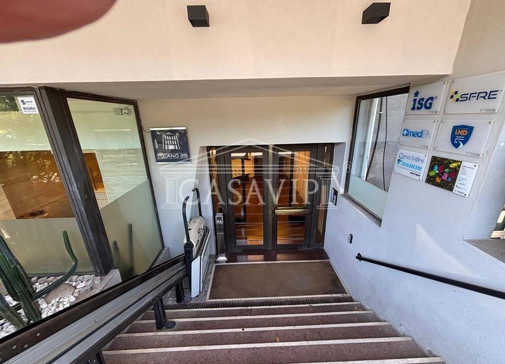 Lungo Viale Tiziano, all'interno di palazzina interamente dedicata a business center, raro se non unico esempio nel quartiere, in posizione quindi centralissima e ben collegata, peraltro ricca di posti auto a strisce blu fronte ingresso sempre liberi, proponiamo in locazione ufficio posto al piano terra di circa 80mq.