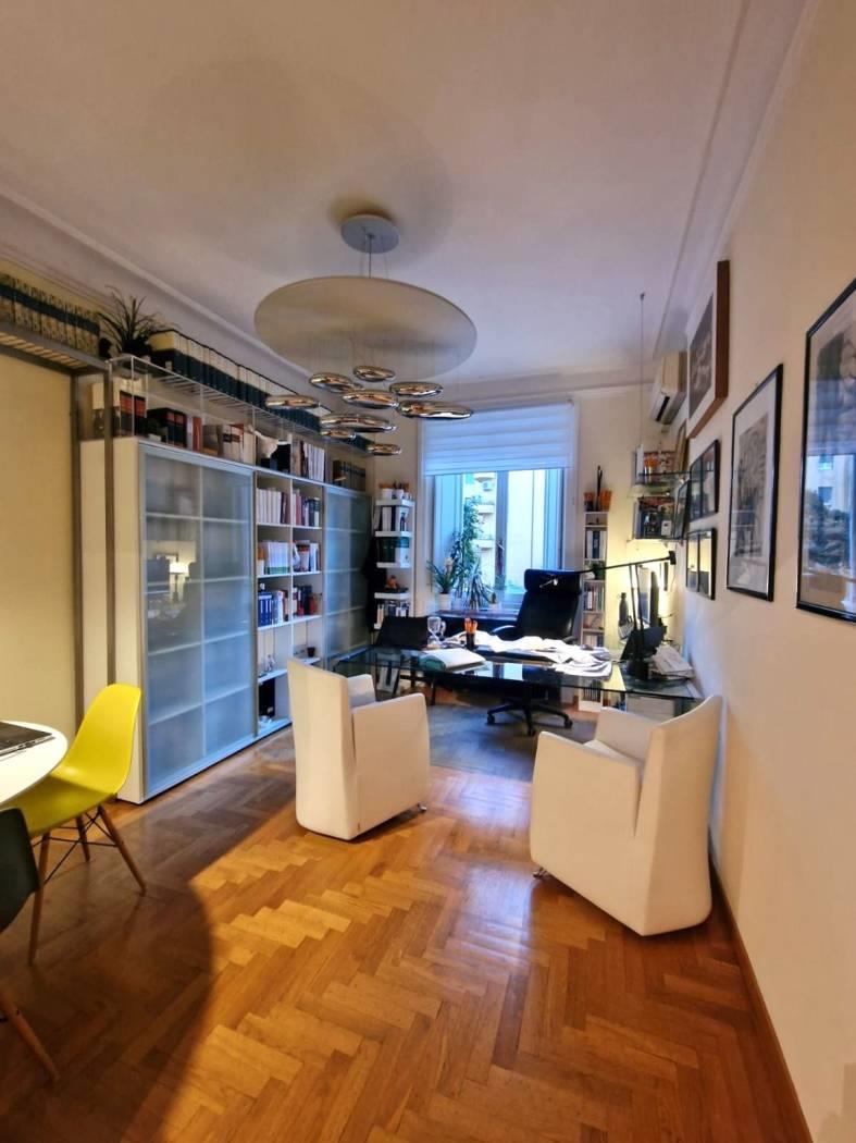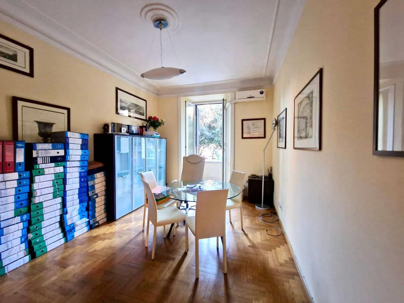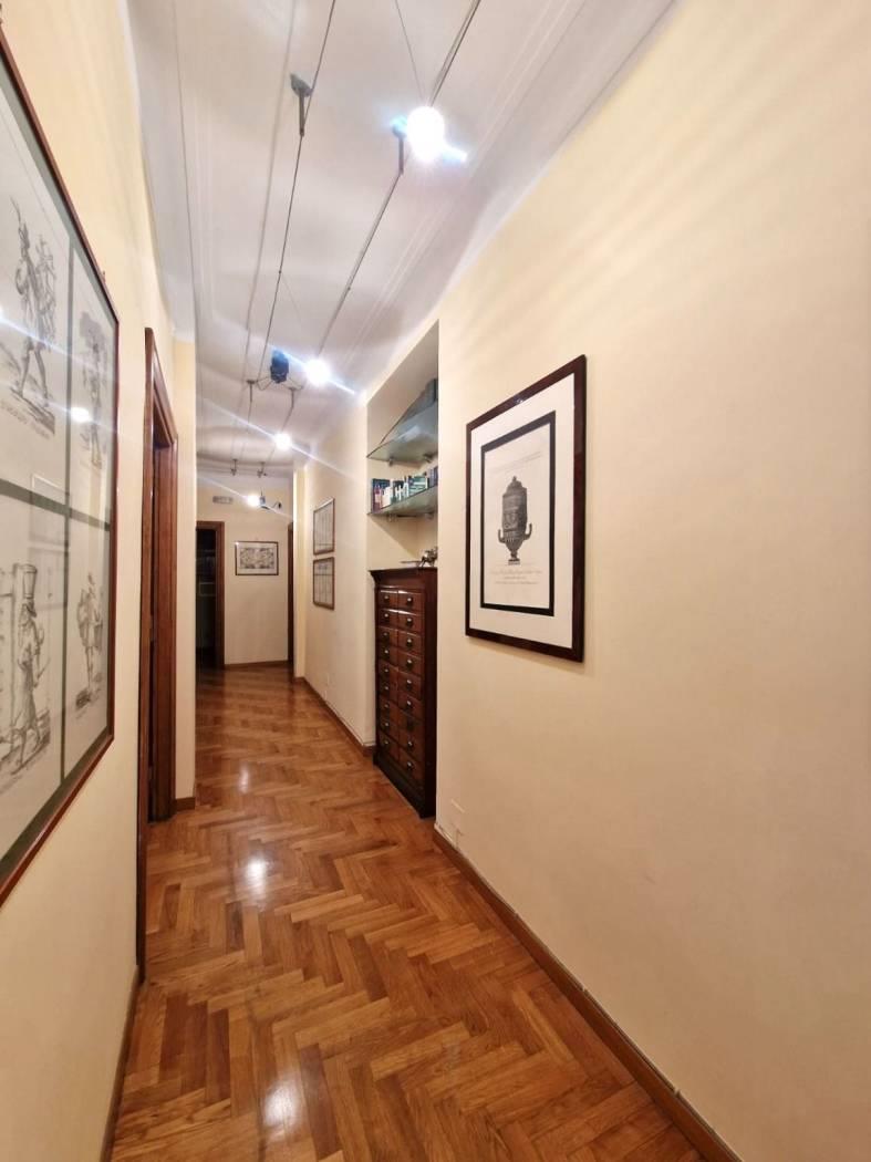 È composta da ingresso, quattro camere, una cameretta, bagno e due balconi. Gli spazi ampi e ben proporzionati consentono diverse soluzioni di utilizzo, sia come studio professionale sia come abitazione. Il parquet contribuisce al fascino e all’eleganza dell’immobile. Possibilità di ripristinare la cucina.