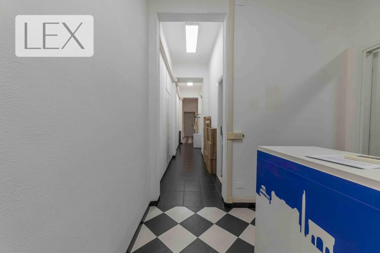 Proseguendo, sulla sinistra si trovano due armadi a muro e sulla destra abbiamo l’accesso alla prima delle cinque stanze adibite a ufficio con affaccio diretto su Viale Regina Margherita e con pavimentazione a scacchiera marmorea e per finire un comodo servizio con affaccio interno. L’appartamento si presenta in ottime condizioni generali, grazie a un’attenta ristrutturazione che ha preservato il fascino d’epoca unito al comfort moderno.