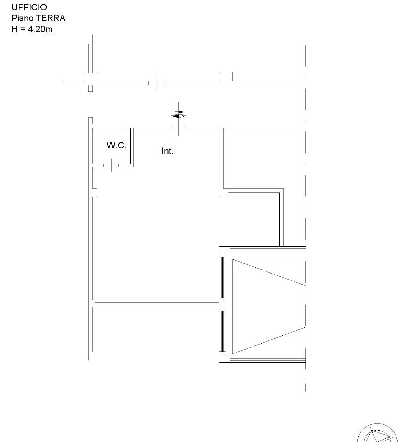 L'ambiente interno è composto da un elegante open space con doppia e ampia vetrata, ideale per studi professionali.