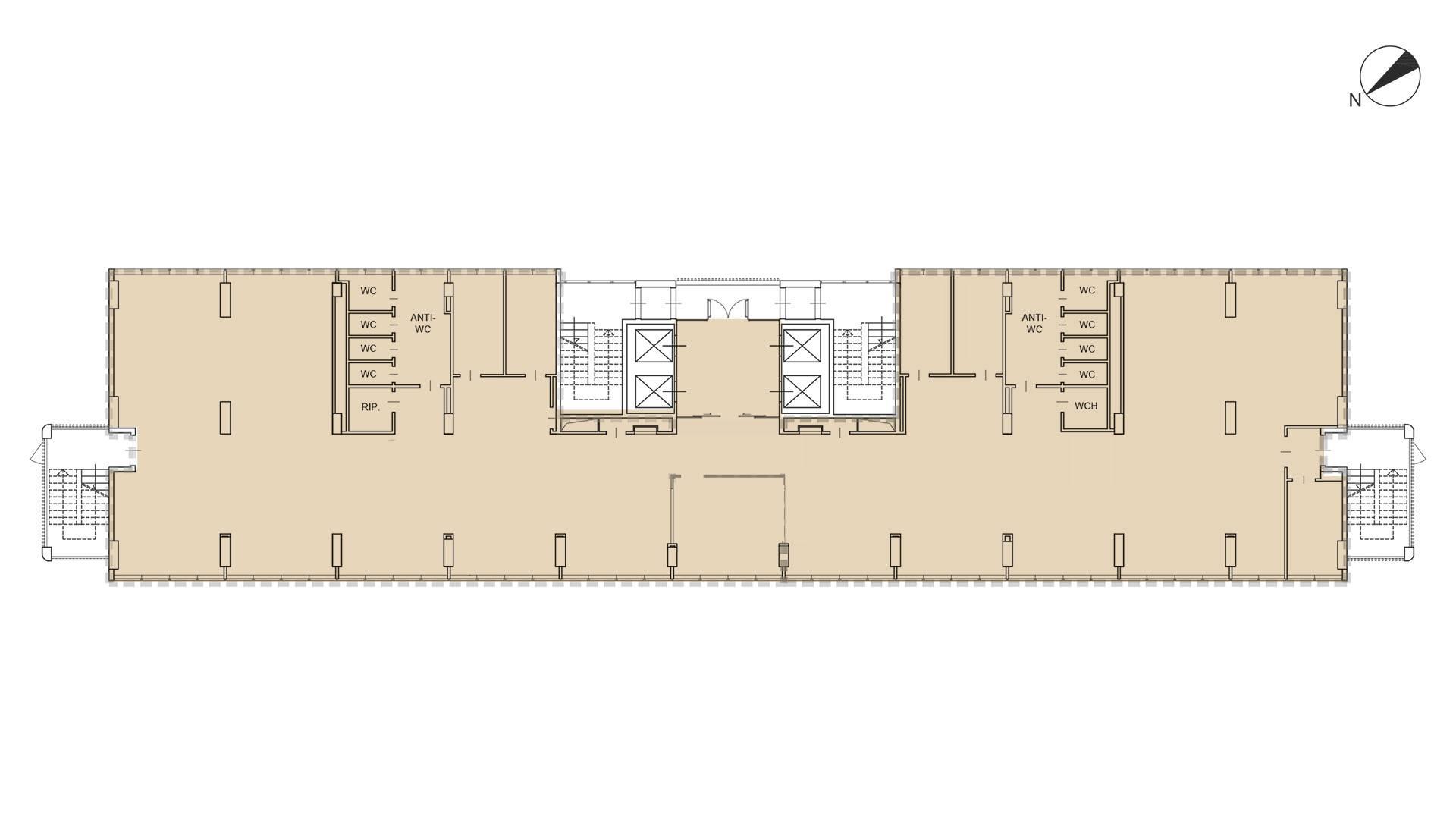 L'edificio è composto da un corpo scale centrale comune ed uscite di sicurezza laterali.