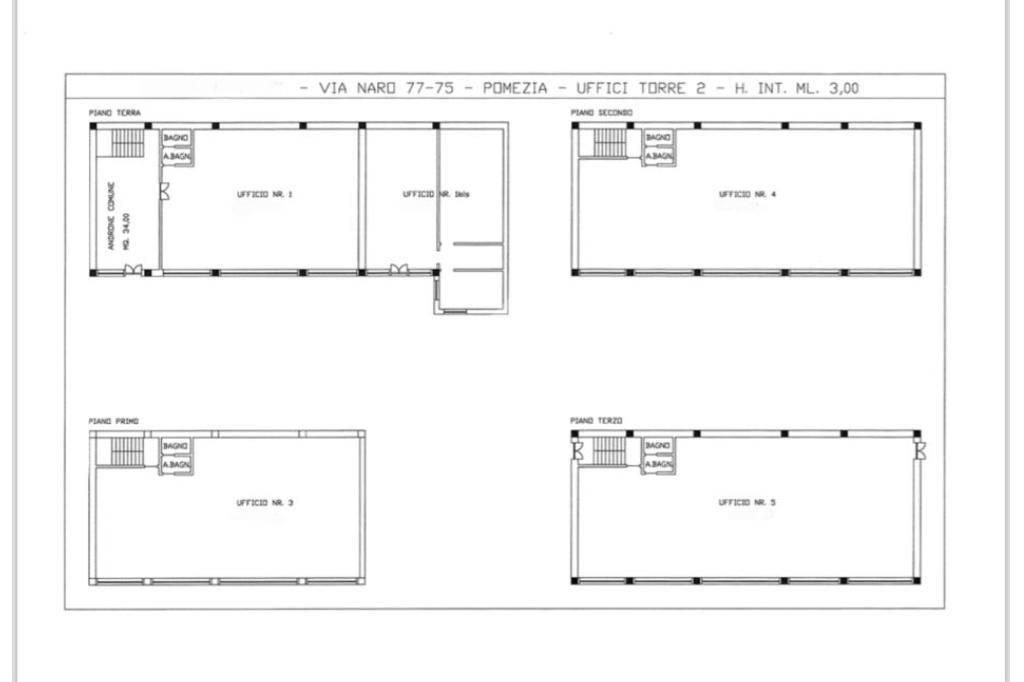 Proponiamo in locazione a Pomezia, in Via Naro, un intero edificio direzionale sviluppato su quattro livelli, per una superficie complessiva di circa 600 mq, composto da tre piani da 150 mq ciascuno e un piano terra di circa 100 mq.