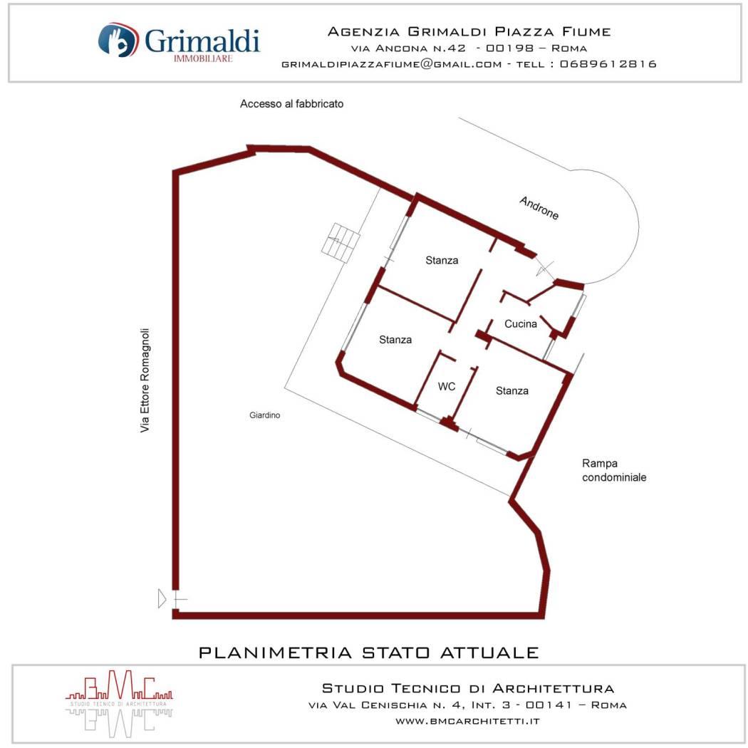 Nel quartiere Talenti, non distante da Via Ugo Ojetti e Via Nomentana, precisamente in Via Ettore Romagnoli, la Grimaldi Immobiliare Piazza Fiume è lieta di proporre in vendita un ufficio, (accatastato come A/10), di 70 mq circa posto al piano terra all'interno di uno stabile elegante e signorile con accesso condominiale e indipendente con annesso giardino privato di 150 mq per un totale di 94 mq commerciali.