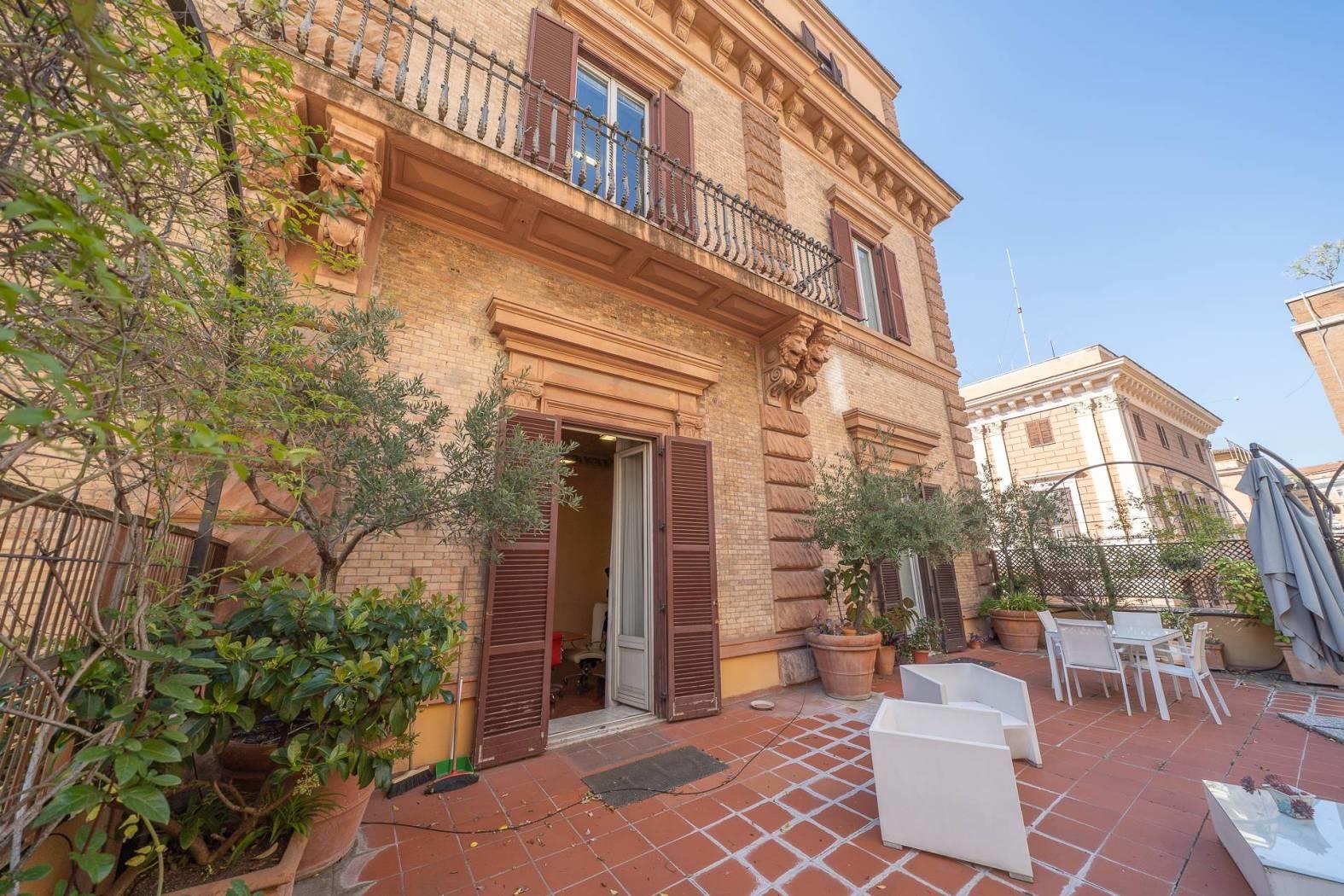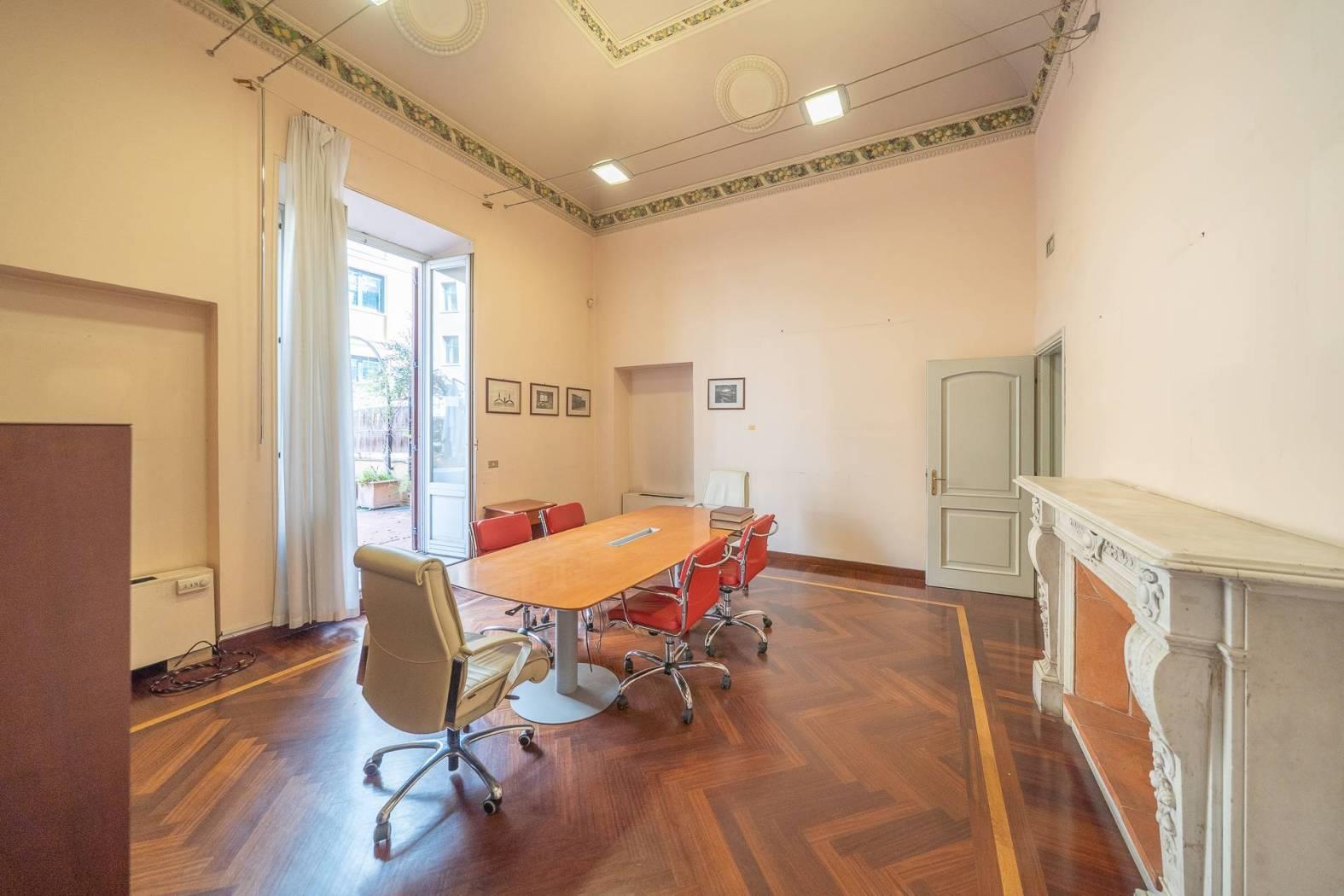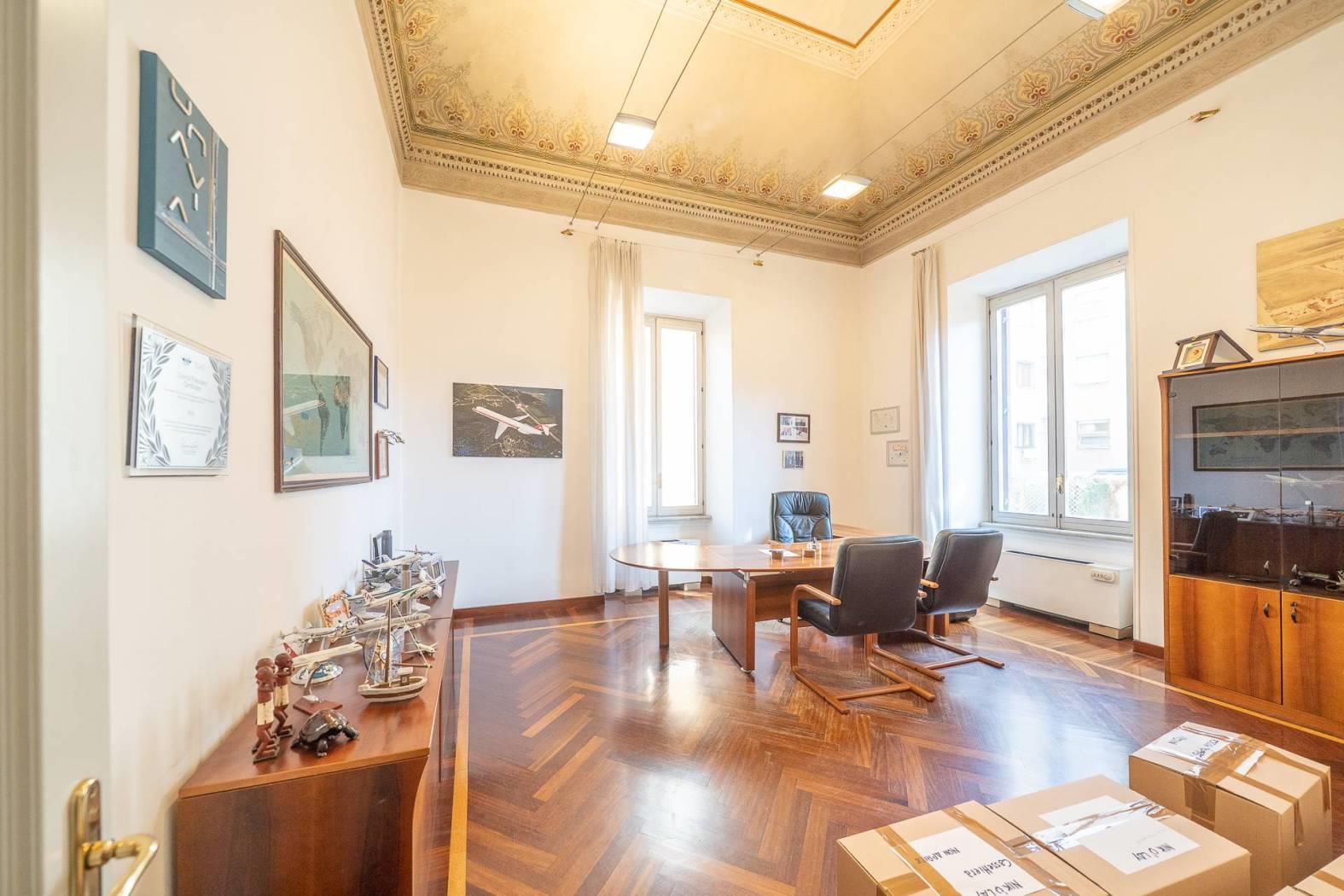Rif:1149- IMMOBILIARE SIMONETTI- Nel cuore del centro di Roma, in un'asse strategica di altissima rappresentanza a pochi passi dalla metropolitana linea B fermata Castro Pretorio, ed a soli 800mt dalla Metro A e stazione ferroviaria di Roma Termini, L'Immobiliare Simonetti è lieta di proporre la locazione di un ufficio posto al primo piano e secondo di uno stabile dell'Ottocento. La soluzione si estende per una superficie totale di 856 mq con annesso terrazzo panoramico di circa 170 mq. Si accede alla proprietà tramite delizioso cortile interno che mantiene all'edificio la giusta tranquillità e la privacy dall'esterno. Entrando nell'edifico veniamo accolti da un grazioso androne con relativa scala principale e due ascensori che collegato tutti i piani. Salendo al primo piano troviamo 11 stanze, tra stanze operative, direzionali e di rappresentanza, impreziosite da soffitti alti 5 metri e in parte affrescati. Le due sale principali del piano escono su un terrazzo panoramico di circa 170 mq. Completa il piano due bagni.