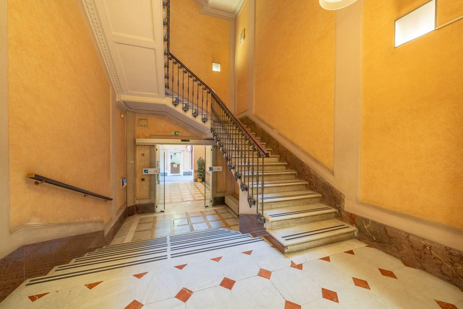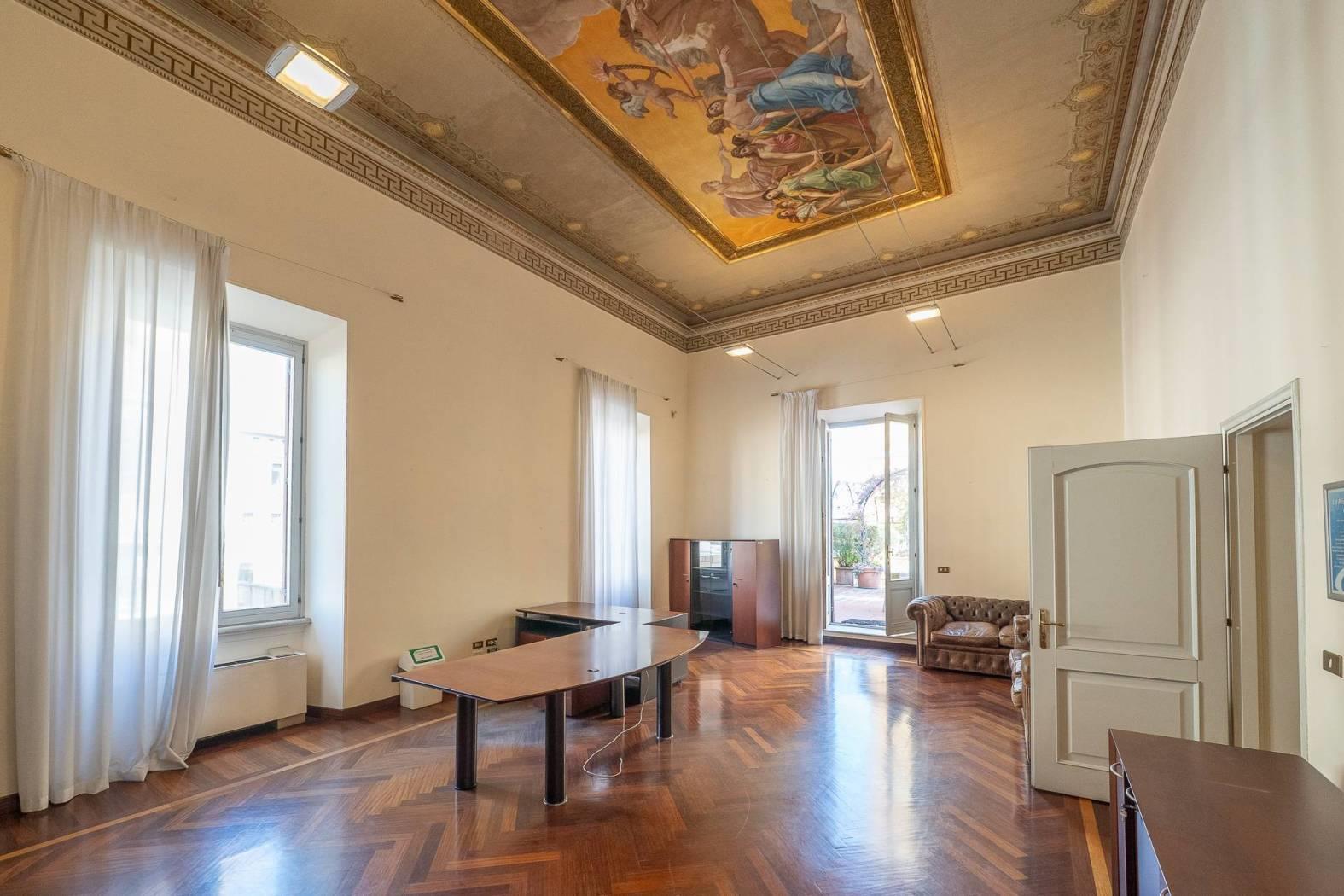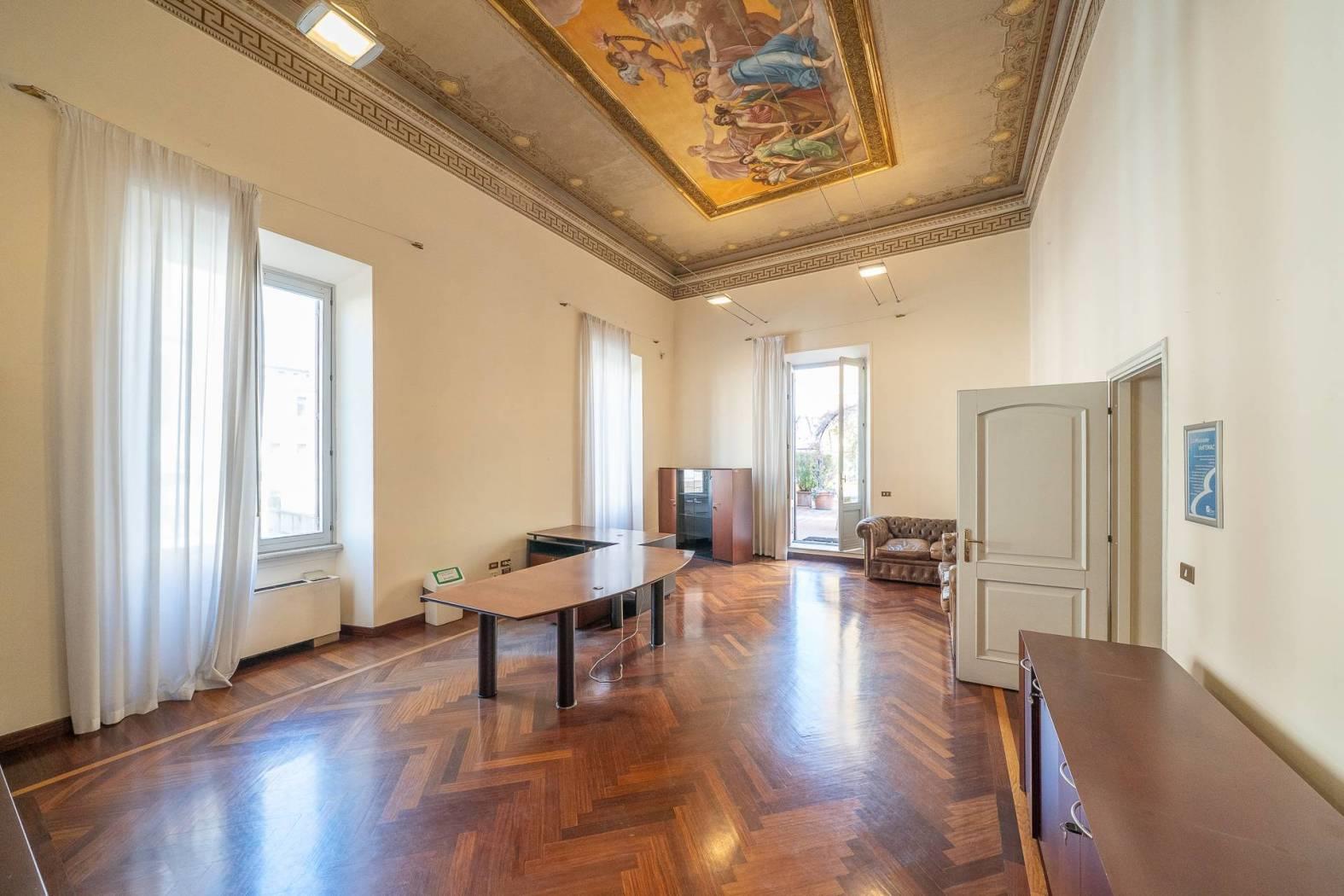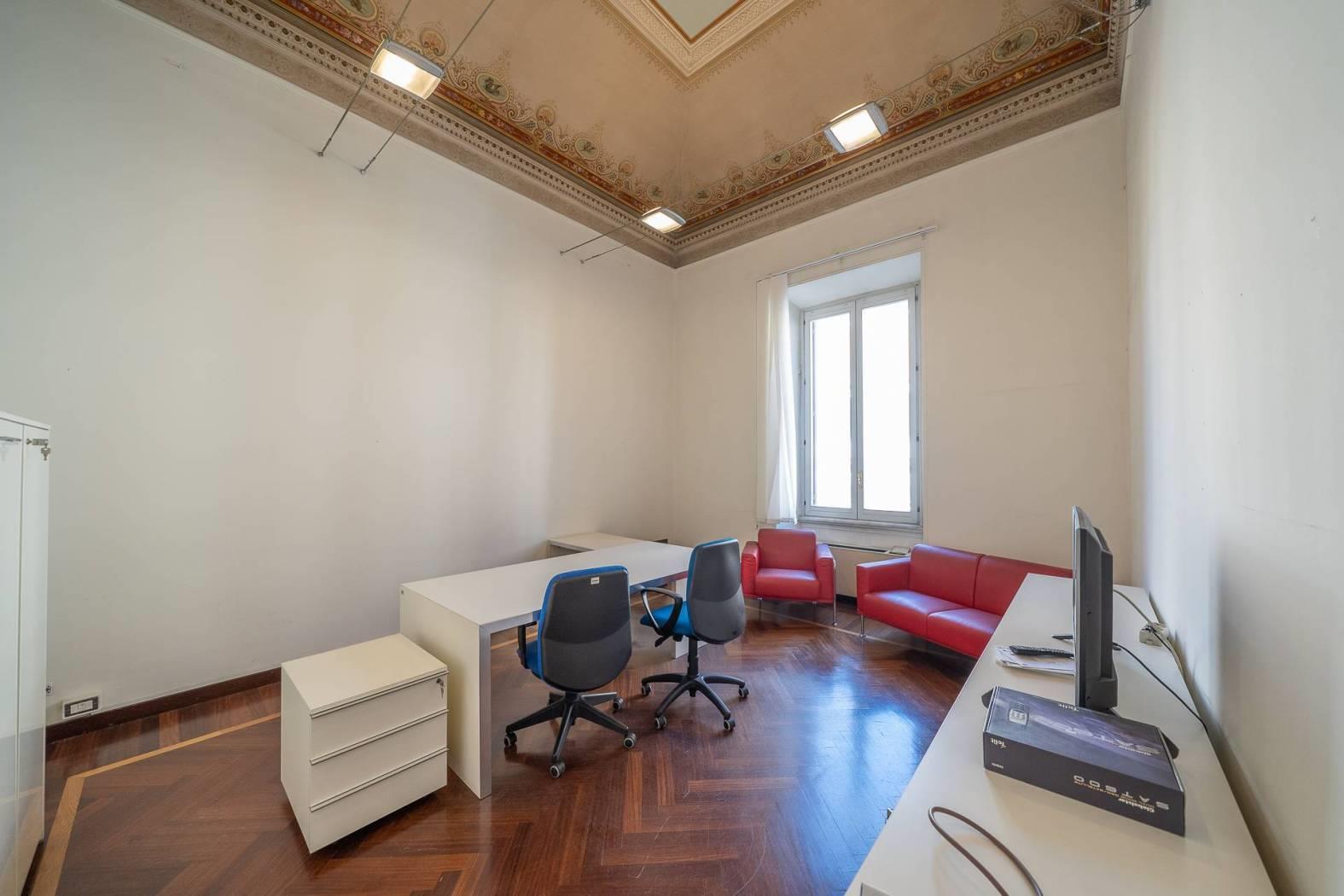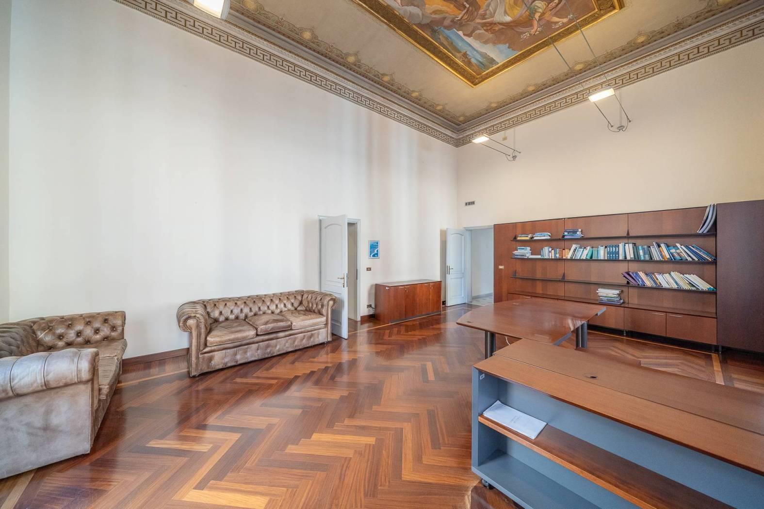 Al piano superiore abbiamo ulteriori 11 stanze, sempre di diverse metrature e con soffitti alti 5 metri in parte affrescati e due ulteriori bagni. POSSIBILITA' DI LOCARE METRATURE MAGGIORI PER ARRIVARE FINO A 2.400 MQ E DI LOCARE BOX AUTO/MOTO E MAGAZZINO.