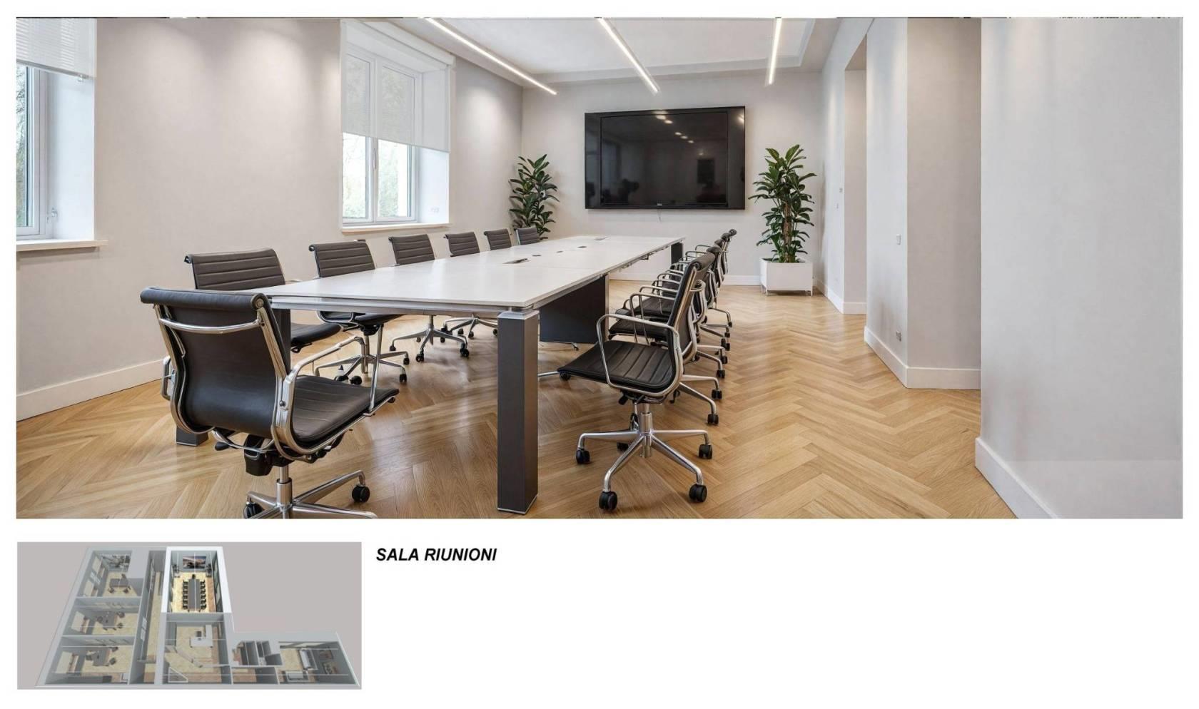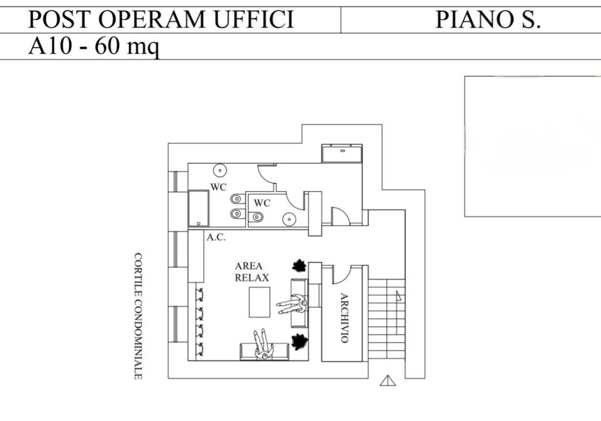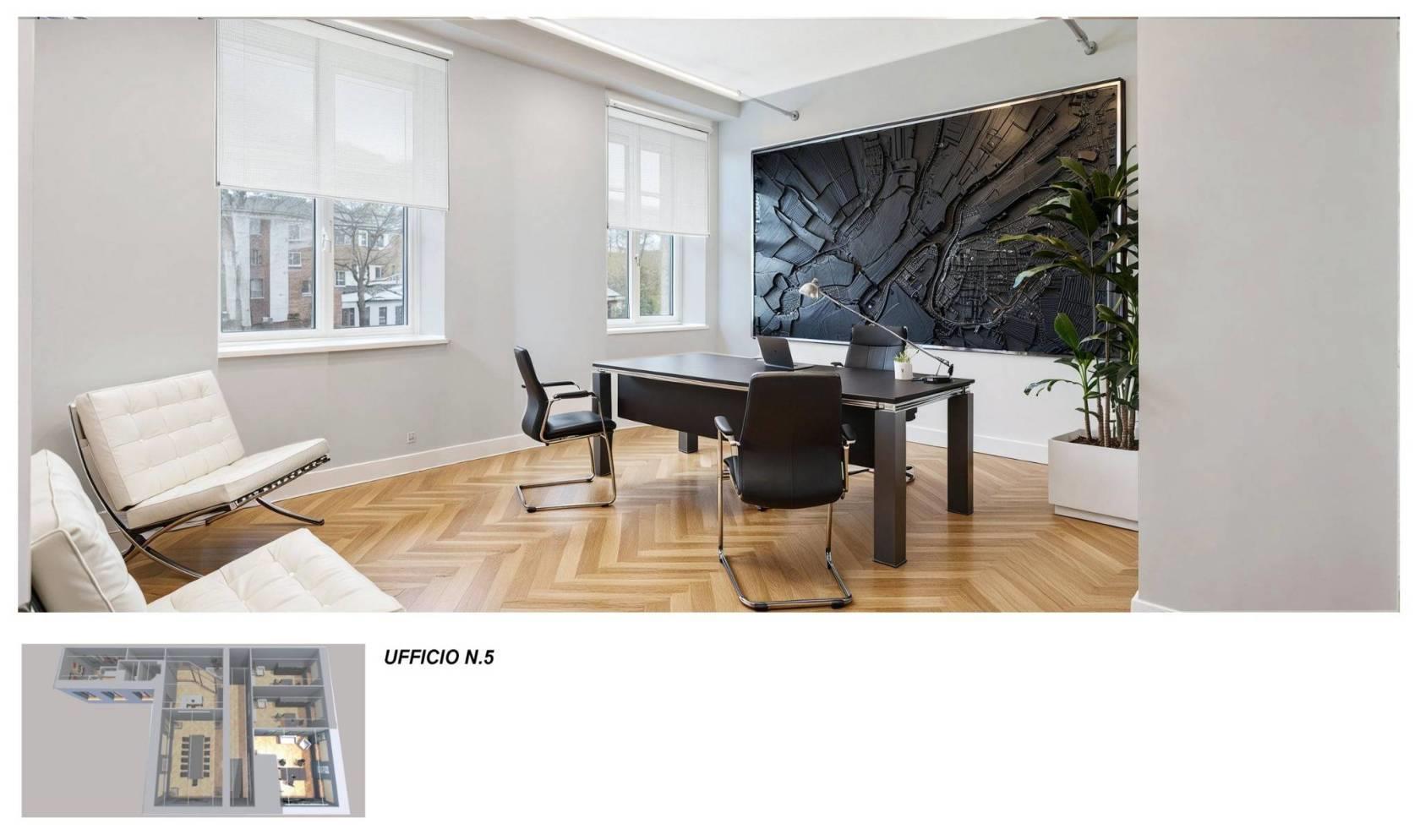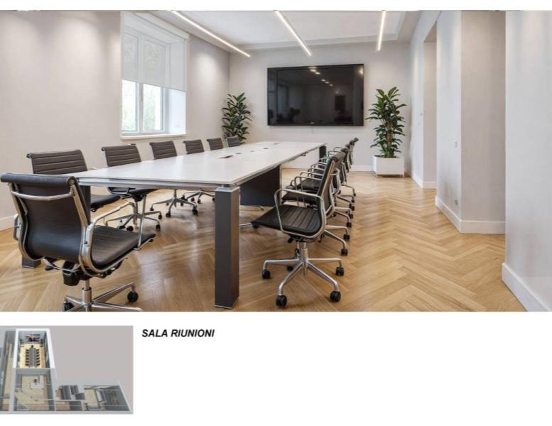 Al piano rialzato, la proprietà si sviluppa per 200 mq ed è attualmente composta da un ambiente destinabile a sala riunioni, 5 ambienti uso uffici e un bagno; al piano S1, un ambiente dei restanti 60 mq con affaccio sul cortile interno destinabile ad area relax, una zona archivio e un bagno.