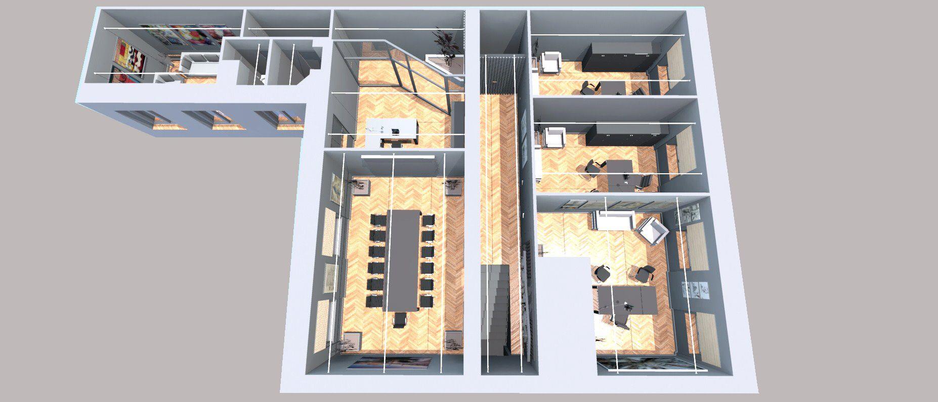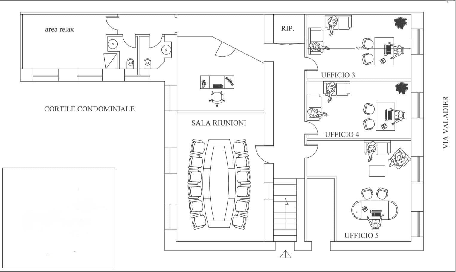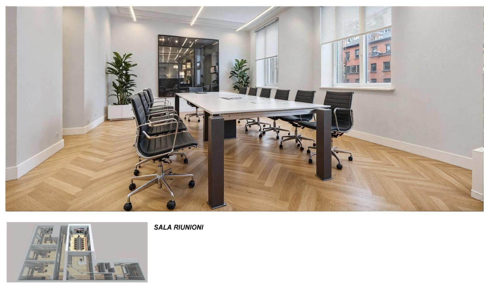 Al piano rialzato, la proprietà si sviluppa per 200 mq ed è attualmente composta da un ambiente destinabile a sala riunioni, 5 ambienti uso uffici e un bagno; al piano S1, un ambiente dei restanti 60 mq con affaccio sul cortile interno destinabile ad area relax, una zona archivio e un bagno.