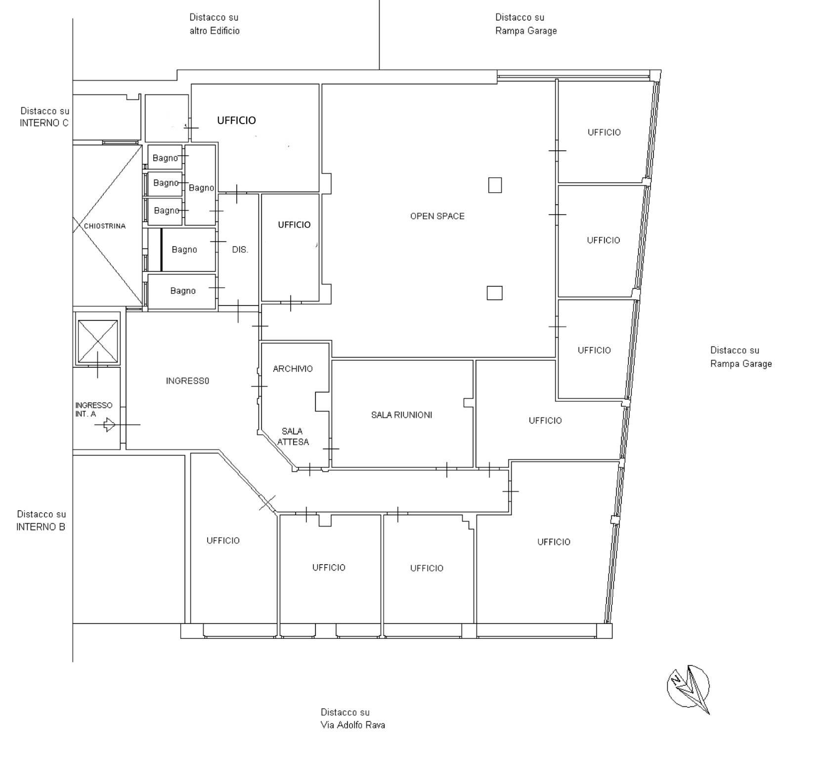 • Area operativa composta da 4 uffici privati, un open space di 80 mq e vano archivio attrezzato