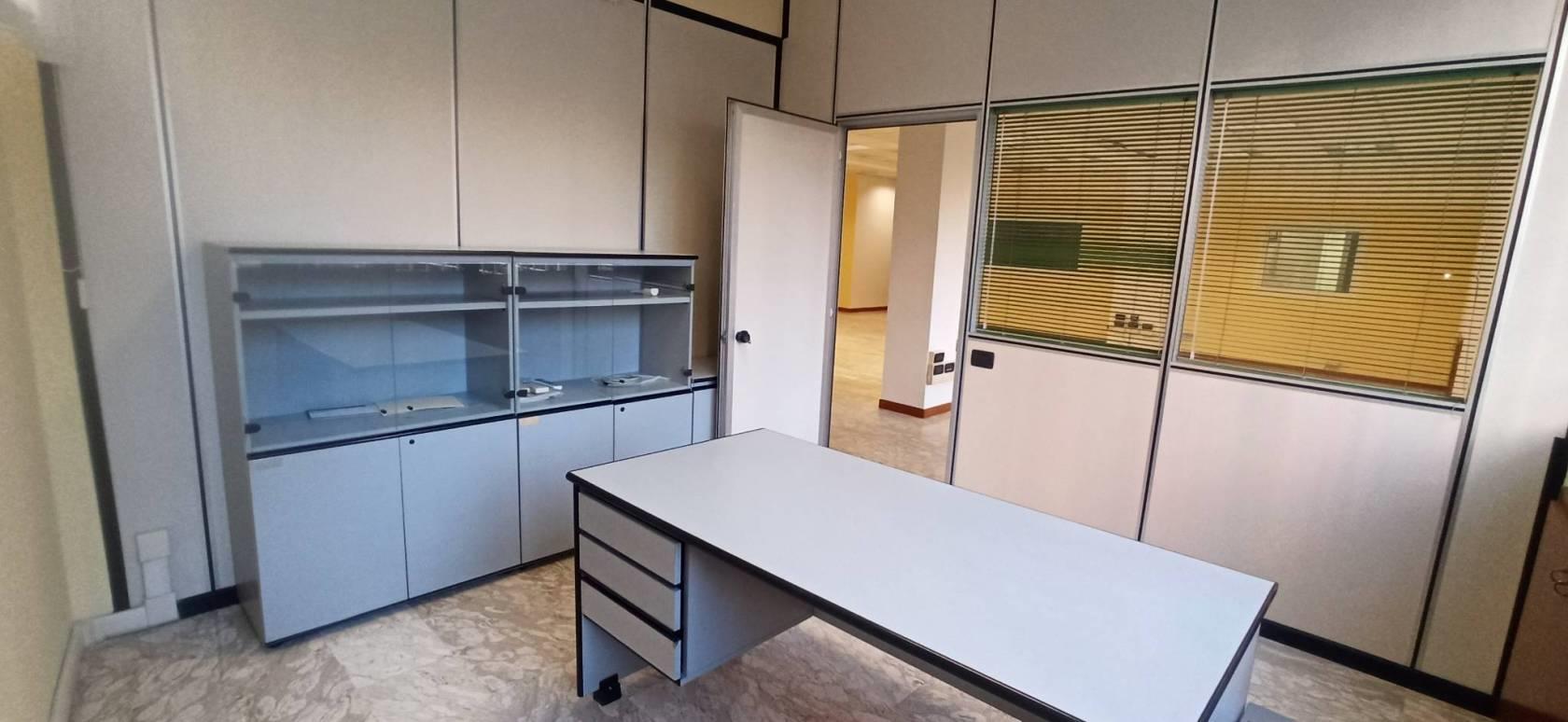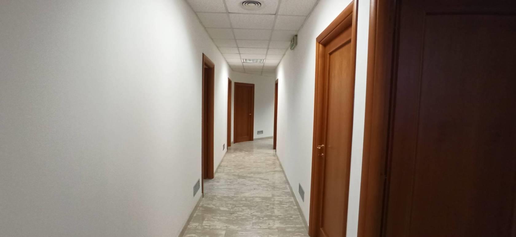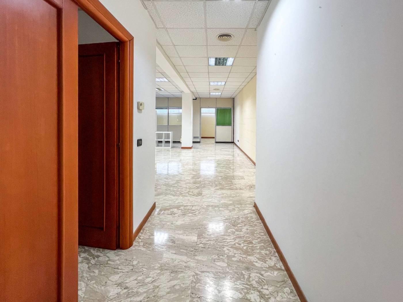Suddiviso in una area operativa e una direzionale, l’immobile consiste in una grande reception con sala di attesa adiacente, area operativa composta di 4 uffici e un open space di 80 mq., area direzionale con sala riunioni arredata e cablata e 5 uffici comprendenti stanza dirigenziale. Presente vano archivio arredato con scaffalatura su misura e armadi di legno incassati in alcuni uffici (possibilità altro arredo).È presente stanza blindata in area operativa. Servizi igienici composti da 5 di cui uno dedicato a persone diversamente abili.