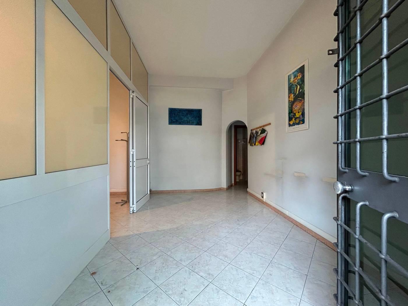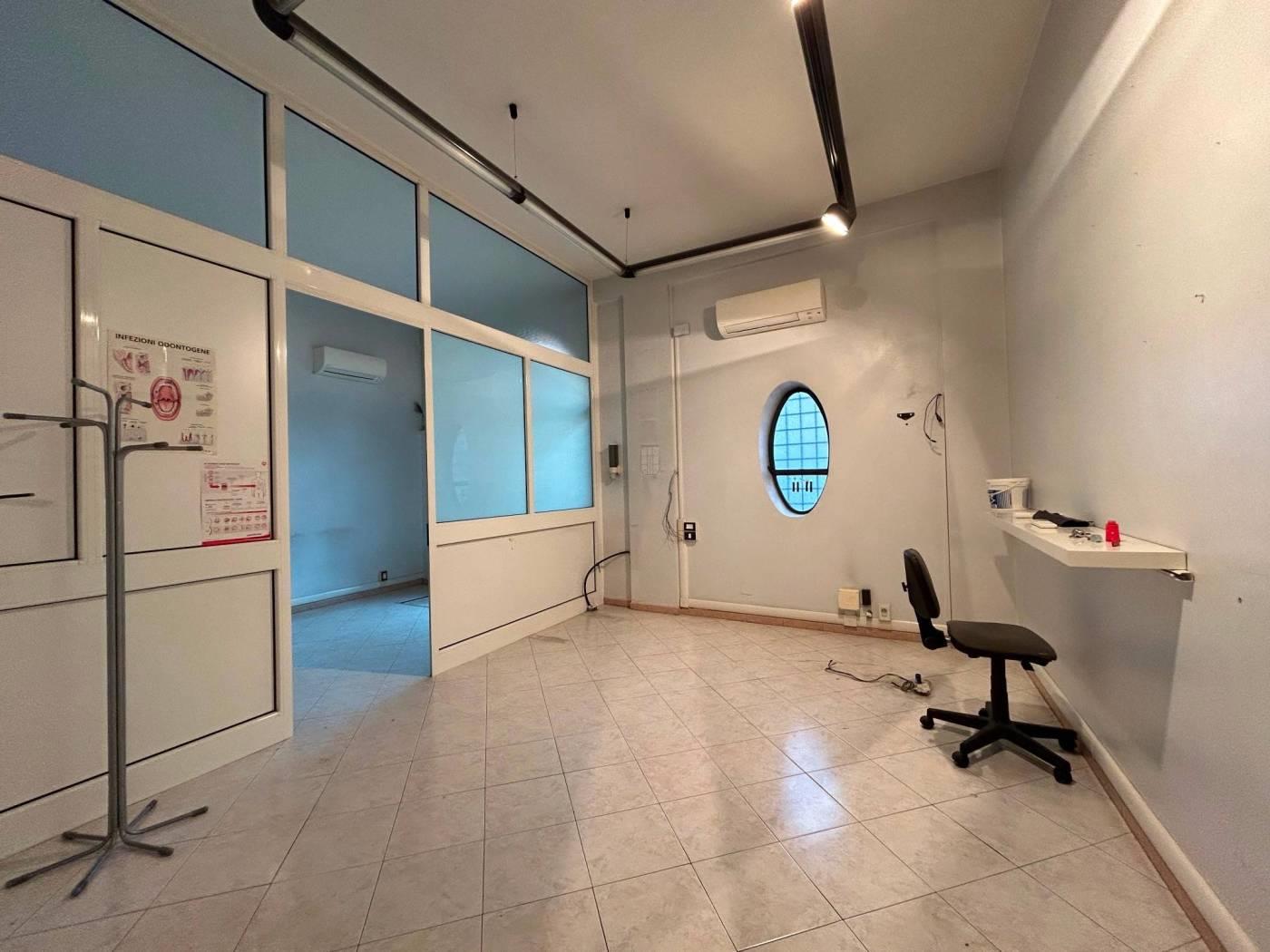 L'immobile si trova al piano terra, ha un ingresso indipendente su strada tramite un terrazzo di proprietà di circa 15 mq. All'interno sviluppa una superficie di mq 53 catastali composti attualmente da una sala di ingresso/attesa, studio, magazzino e bagno. Riscaldamento autonomo caldo/freddo con condizionatori. Classe energetica in corso di definizione
