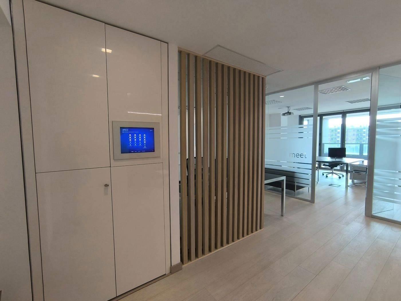 I moderni uffici sono stati progettati per offrire spazi comodi e funzionali, con infissi a tutta altezza verso gli ampi terrazzi esterni, che garantiscono luminosità agli ambienti e sono serviti da domotica, personalizzabile, che permette il controllo totale di tutte le funzioni dell’ufficio da un’unica interfaccia, cablatura rete ed impianto di condizionamento caldo/freddo con fancoil.