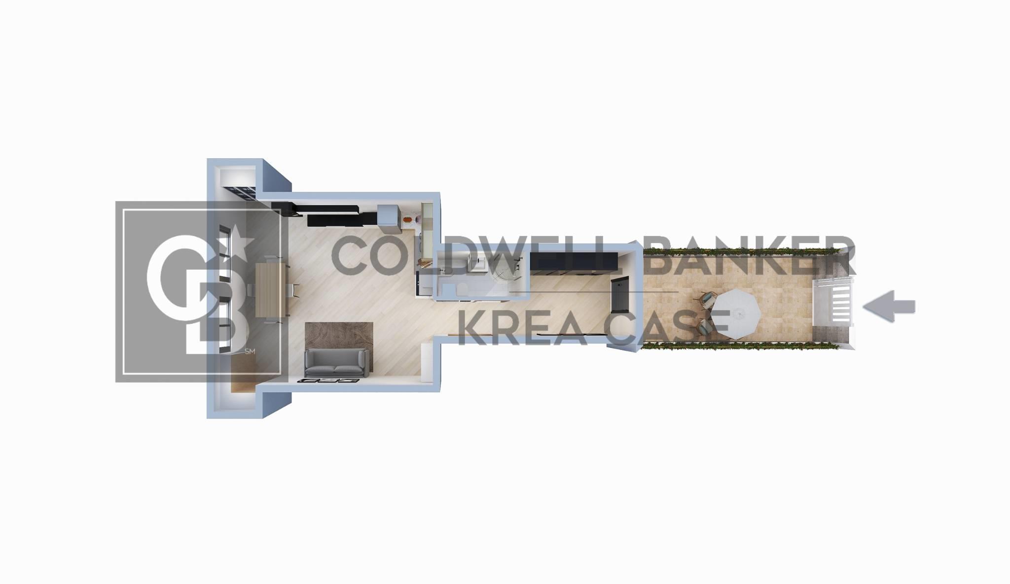 Nei render presenti tra le foto di questa inserzione vogliamo rendere visibile in linea approssimativa la ristrutturazione che sta effettuando la proprietà attuale e la possibilità di arredo degli ambienti (immobile venduto non arredato); le immagini e le proporzioni riportate nell'annuncio non sono da intendersi oggetto di vincolo contrattuale, bensì sono da intendersi come puramente illustrative.