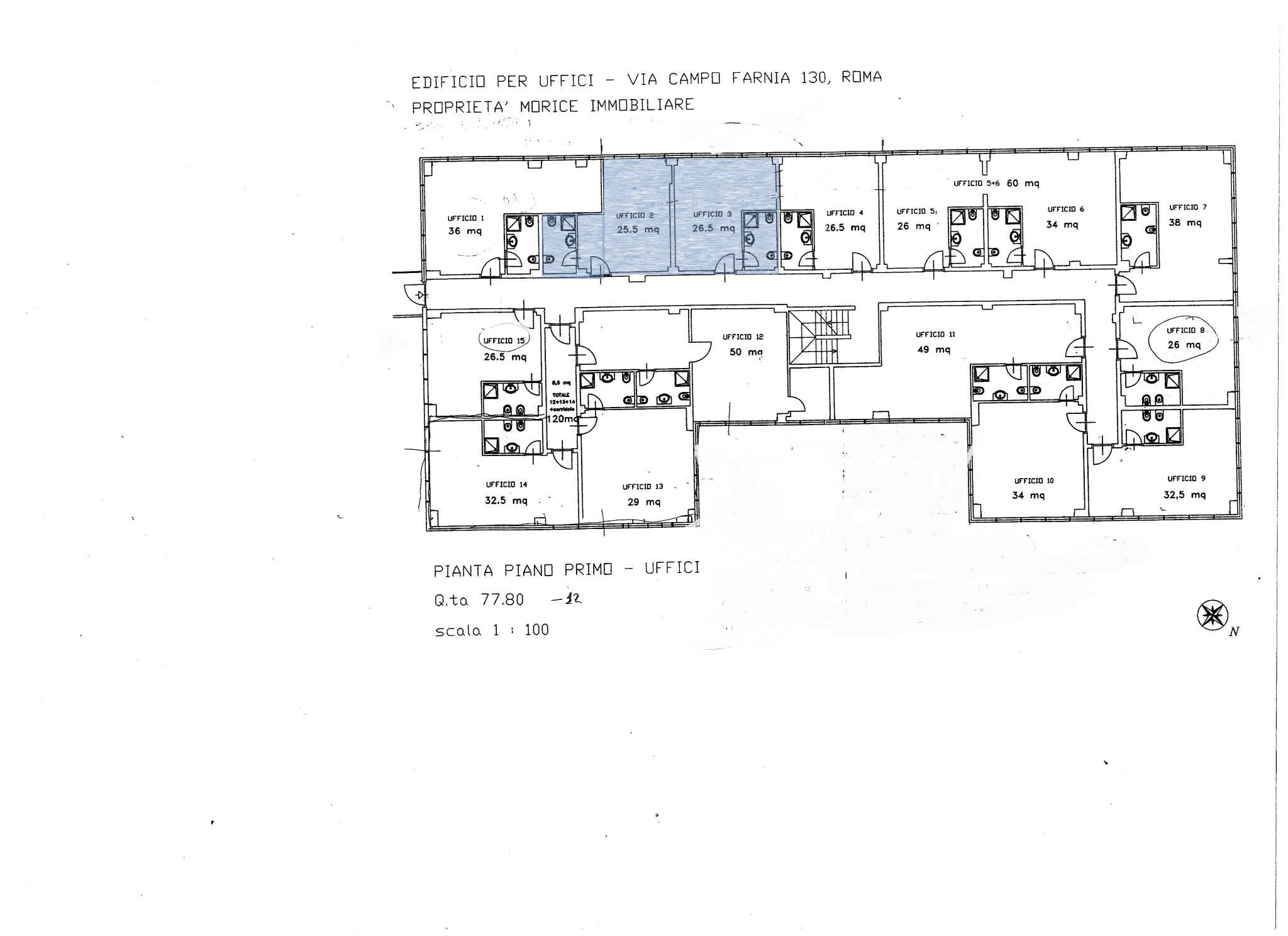 VIA CAMPOFARNIA 130 - Ufficio / studio professionale composto da due locali comunicanti di mq 25 circa ciascuno (Int.2 + Int. 3 totale mq 50), doppi servizi, doppio ingresso.