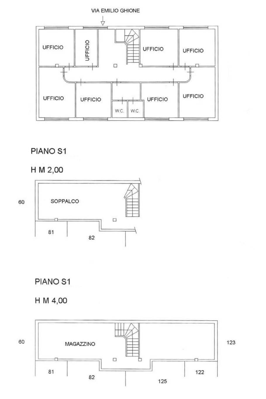 L'immobile si sviluppa su tre piani: piano terra e due piani interrati. Il piano terra, di circa 200 mq, è suddiviso in 8 ampi ambienti tramite pareti e vetrate, con ingresso separato, antibagno e due servizi, per garantire la massima funzionalità e comfort.