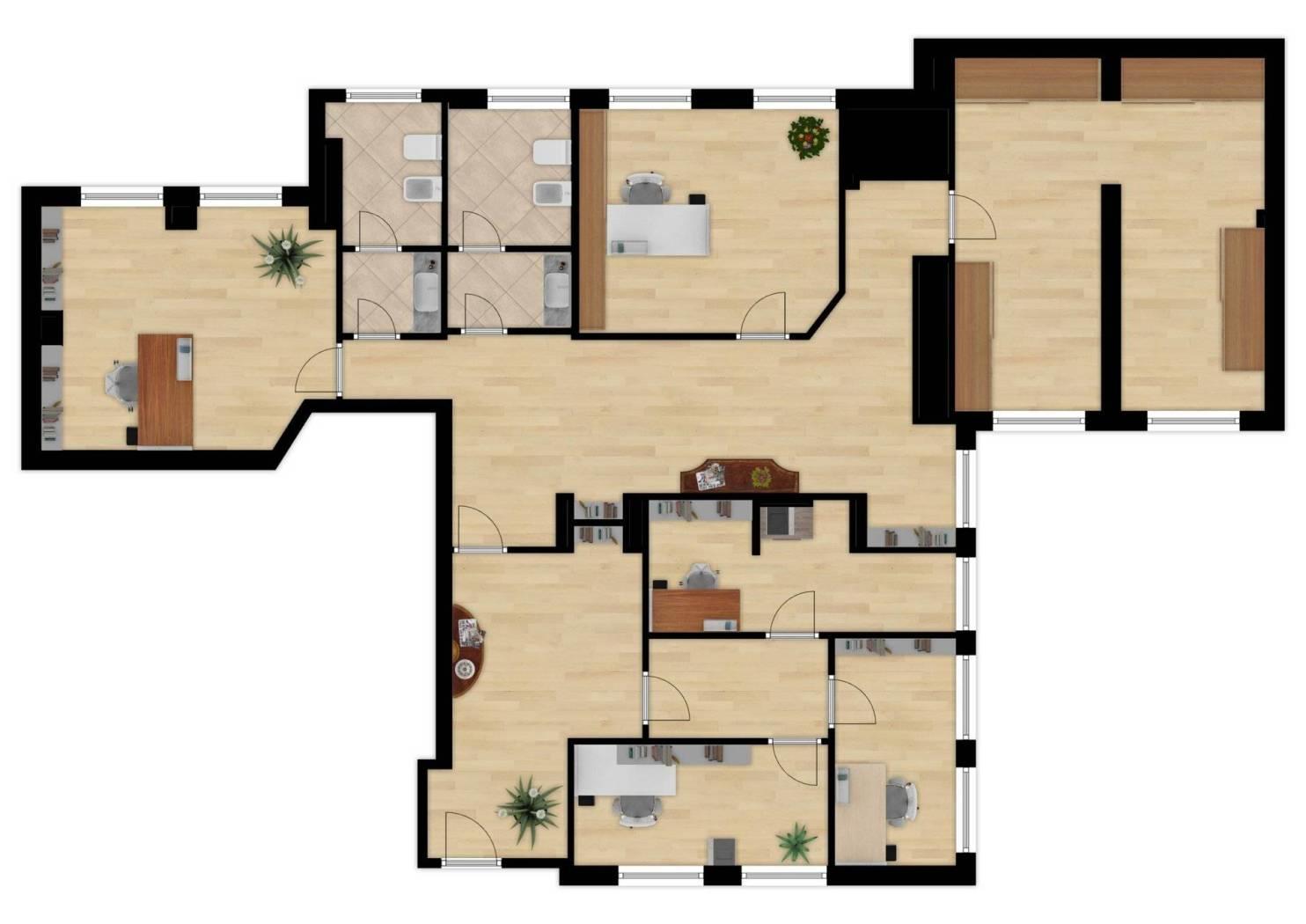 Ottimo e ristrutturato appartamento uso ufficio di 147 mq al piano s2 con affacci piano terra, ascensore al piano, composto da: