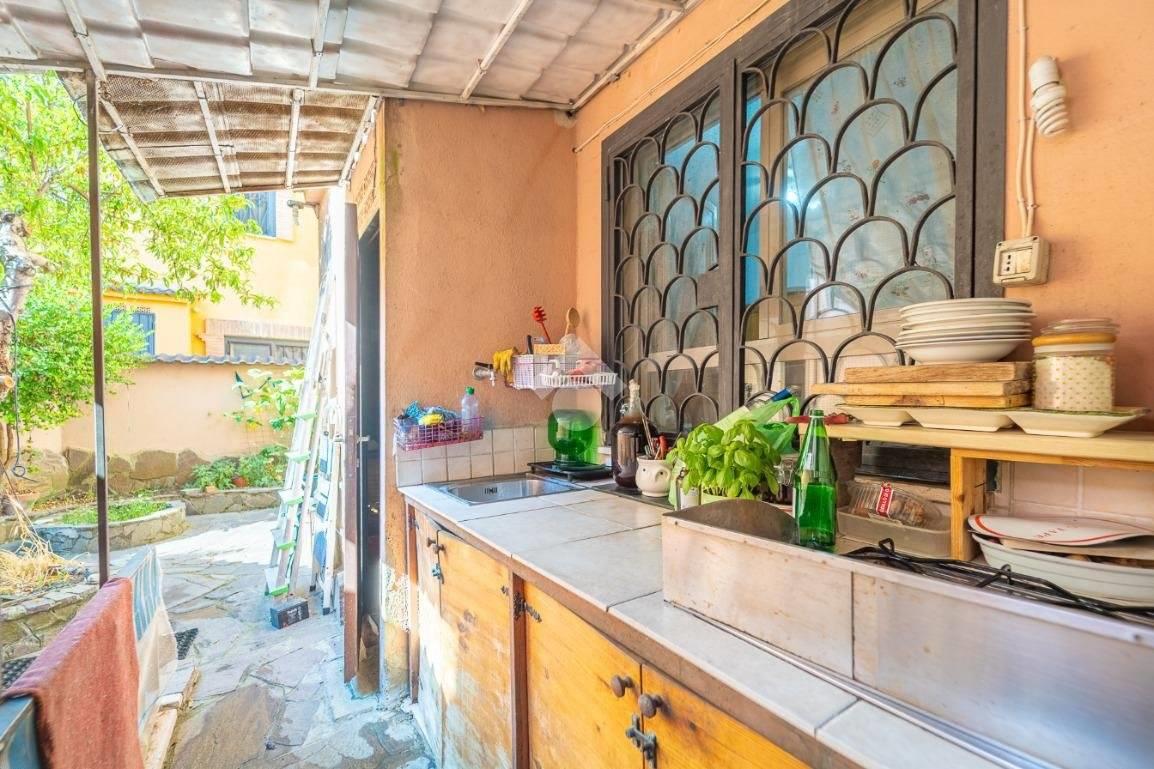 Al Piano terra abbiamo l' ingresso che porta a un ampio doppio soggiorno luminoso con accesso al giardino dove passare momenti di relax e convivialità, una cucina grande abitabile con affaccio sulla chiostrina interna, e un bagno di servizio, nella chiostrina troviamo una cucina esterna e una cantina spaziosa.