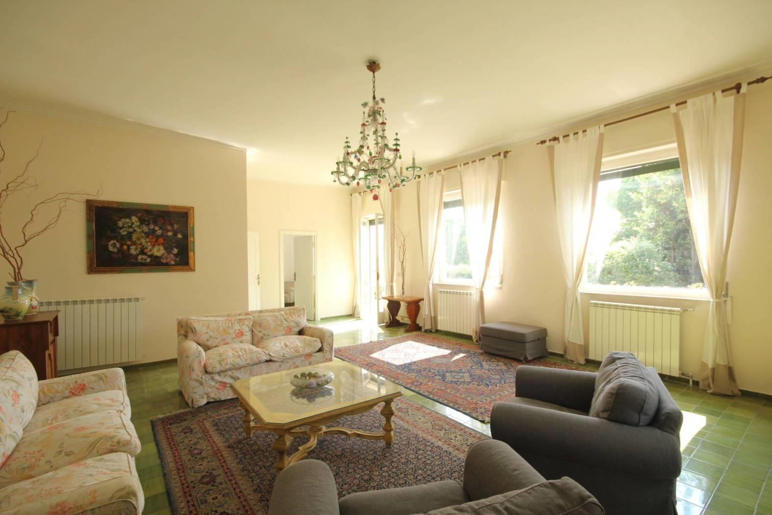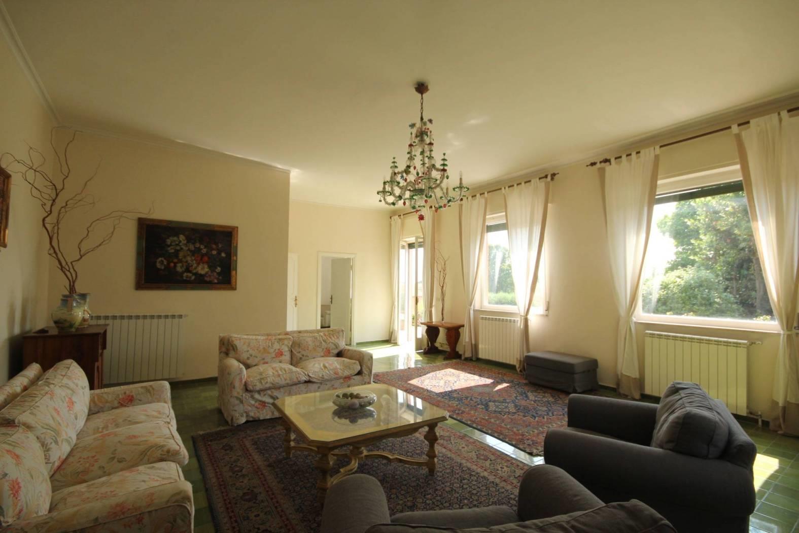 Appartamento in villa di 220 mq calpestabili dotato di terrazzo di ulteriori 130 mq circa e con vista bellissima. Giardino privato di 500 mq; due posti auto all'aperto. Situata all'interno di una proprietà privata di circa 30 Ha (ettari) all'interno della quale sussistono altre unità abitative residenziali. La proprietà è tutta recintata, con servizio di portineria intera giornata fino alle 17.00 e sabato la mattina fino alle 12.00. La casa è ammobiliata ma l'arredo si può togliere su richiesta per soggiorni di almeno 15 mesi e si compone di ampio ed elegante ingresso, doppio salone con splendida vista sulla campagna romana ed ampie finestre, sala pranzo, comoda grande cucina abitabile fornita di tutti gli elettrodomestici, stanza lavanderia, tre camere da letto matrimoniali, 3 bagni, ampi armadi a muro in tutte le camere, aria condizionata, riscaldamento autonomo, piccola cantina di 5mq, internet. L'immobile, di recente ristrutturazione, si presenta perfetto per chi vuole vivere in campagna a pochi minuti da Roma e dagli aeroporti (si trova infatti a 20 minuti da Piazza Venezia, 15 da Ciampino aeroporto e 30 da Fiumicino aeroporto). Perfetto per personale delle Nazioni Unite trovandosi a 20 minuti dall'IFAD ed a 20/25 dal World Food Program. Si trova inoltre a 5-10 minuti di auto dalla NATO DC Cecchignola. Condominio € 300/mese. Per informazioni o per fissare una visita all'immobile si prega di contattare il +39 3496451790 o inviare un sms. Non sono ammessi contratti con società. Non sono ammesse strutture ricettive o residenze per anziani.