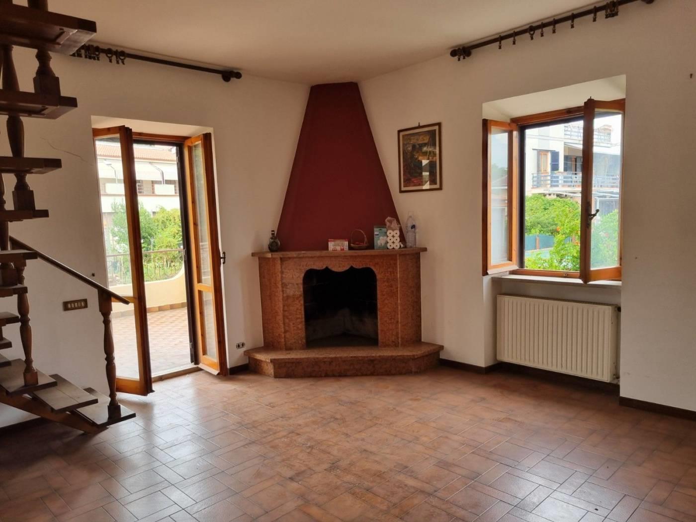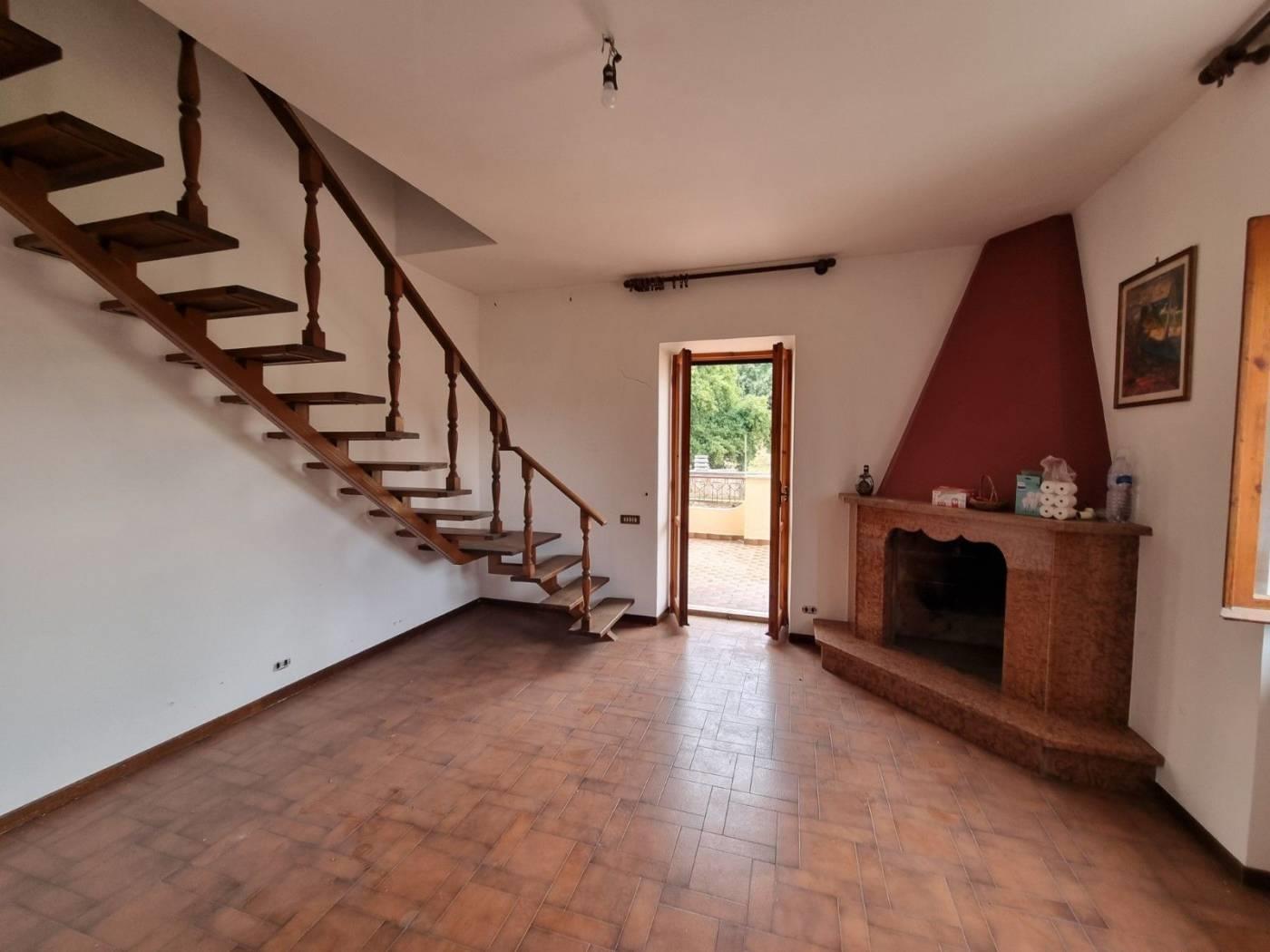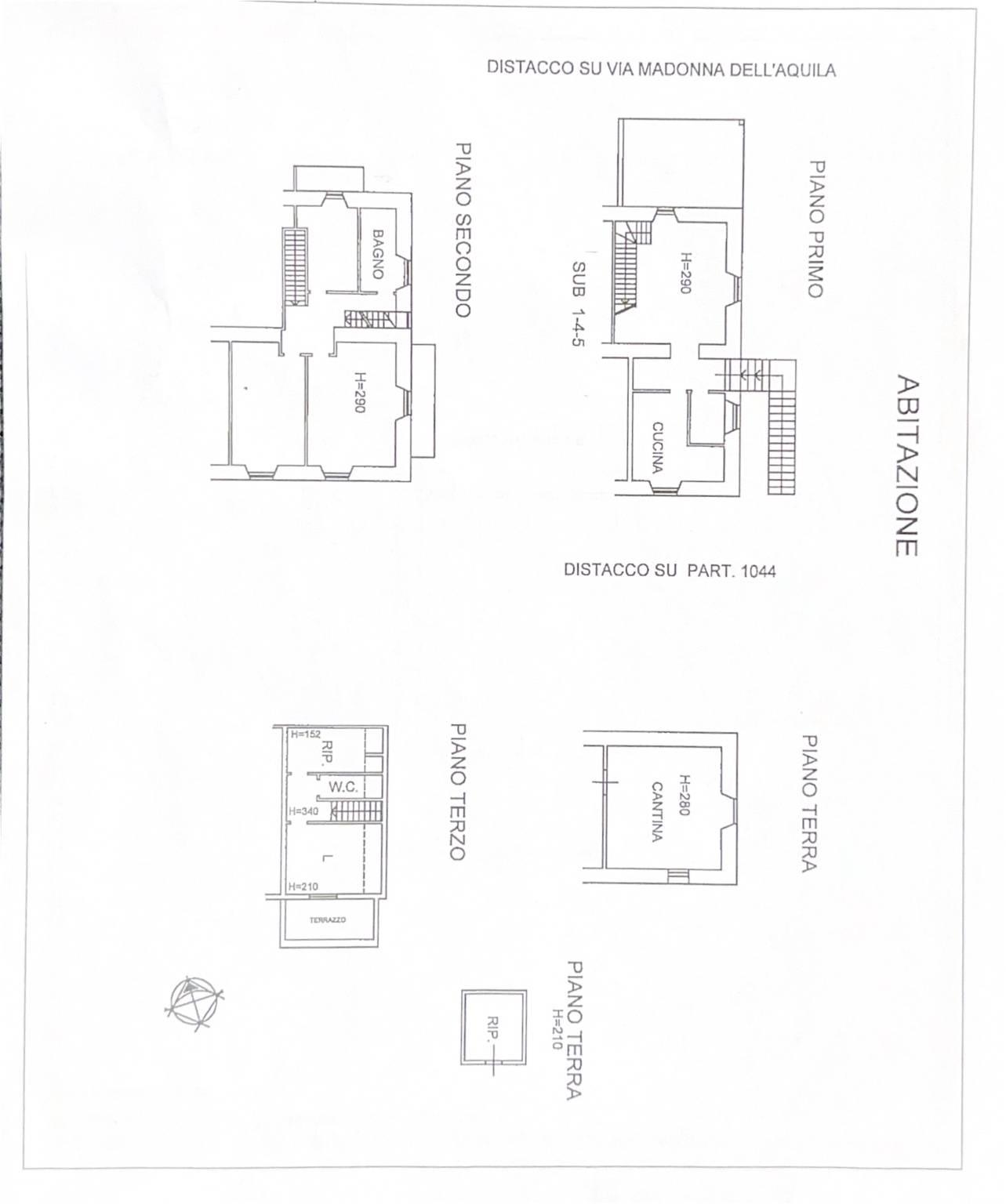 Garage, taverna con camino e ripostiglio al piano terra; Salone con camino, cucina abitabile, bagno e ampio terrazzo al piano primo; Tre camere, bagno e due balconi al piano secondo; Camera , bagnetto, ampio ripostiglio e terrazzo al piano terzo (mansardato). Giardino esclusivo con piccolo locale magazzino e forno esterno. Buone condizioni. Frazionabile per due nuclei familiari.