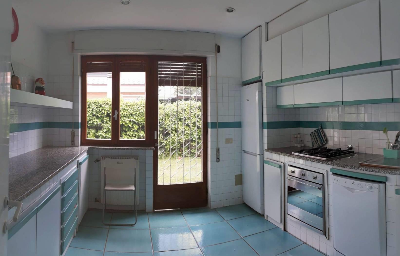 Al piano terra, troviamo un ampio salone doppio, sala da pranzo, cucina, una cameretta, una camera di servizio con bagno interno e un secondo bagno per gli ospiti.
