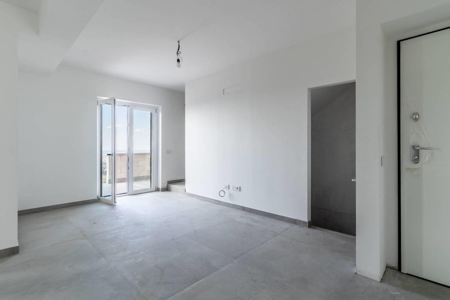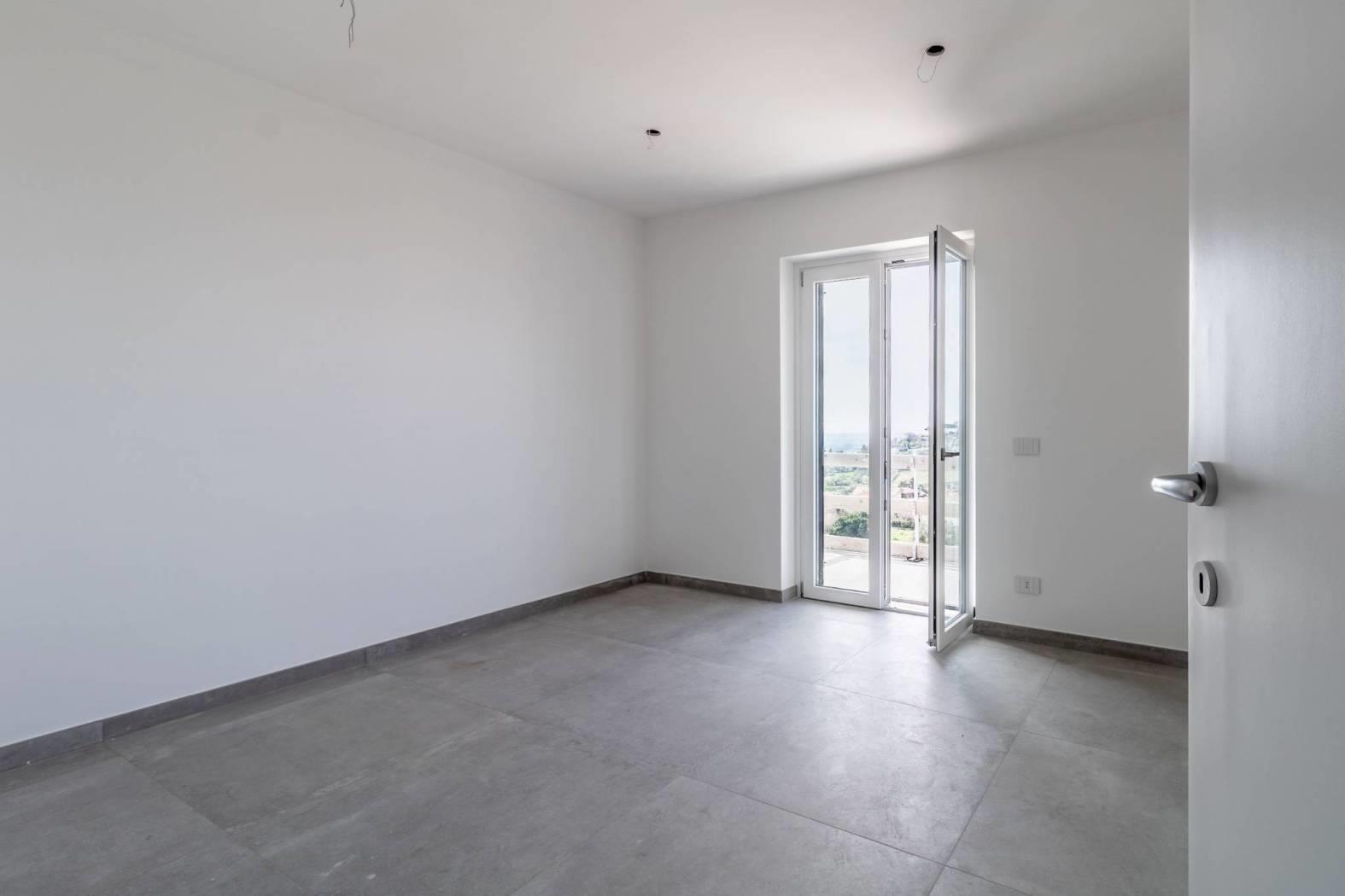 - Piano Terra: luminosa zona living open space con salone e angolo cottura, camera matrimoniale e ampio bagno e magnifico terrazzo porticato con vista sulla collina di Monte Savello e sul mare.