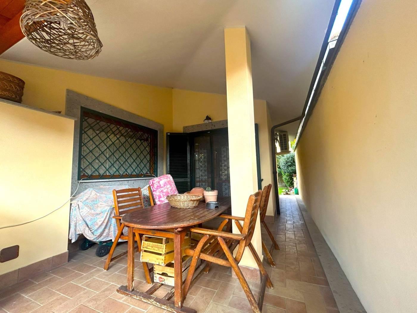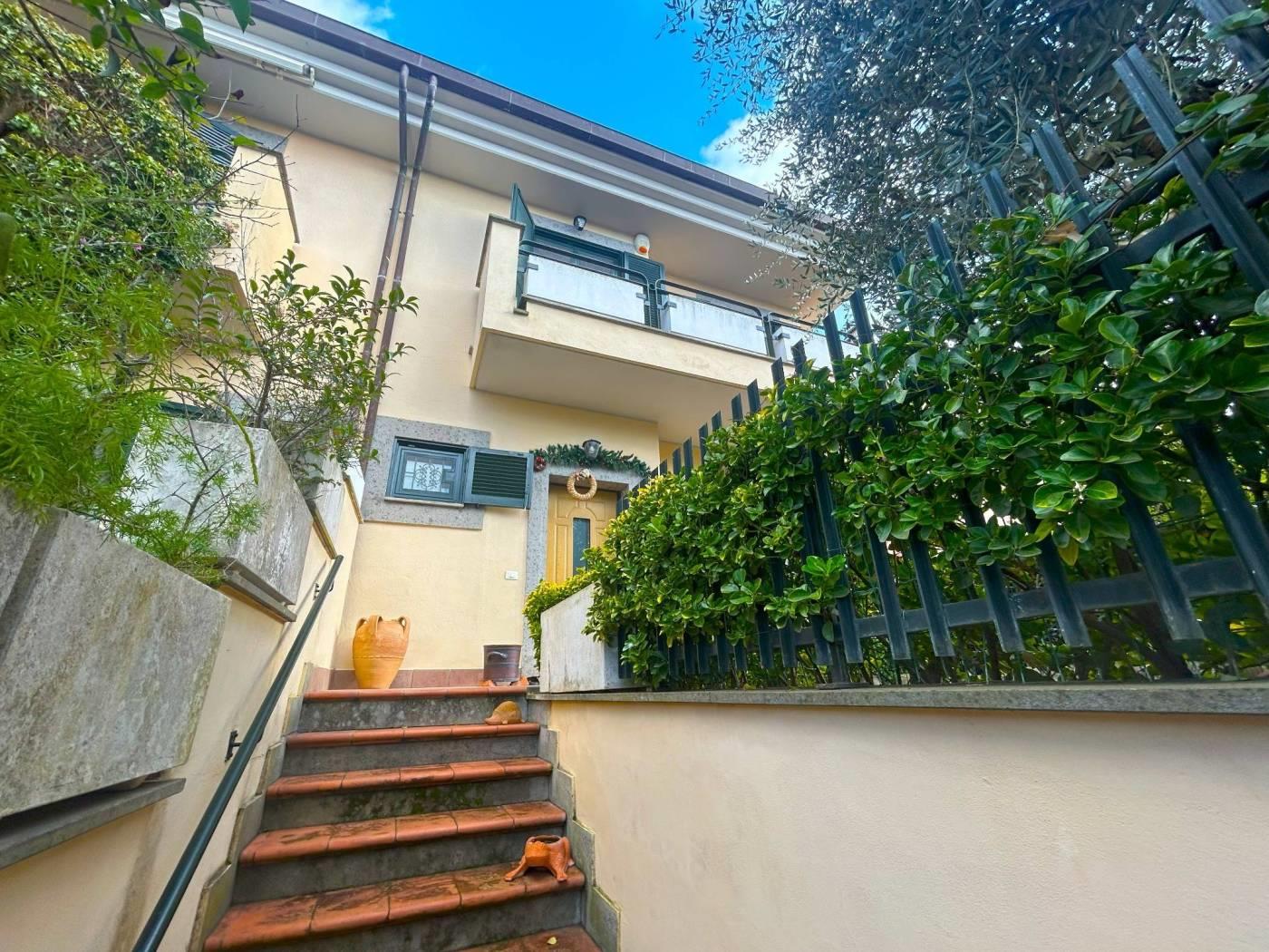 La villa si trova all'interno di un contesto molto piacevole composto di sole ville bifamiliari con cortile centrale comune ed accesso carrabile, ben curato e dalla vista panoramica che nei giorni di bel tempo ci lascia intravedere sino al mare.