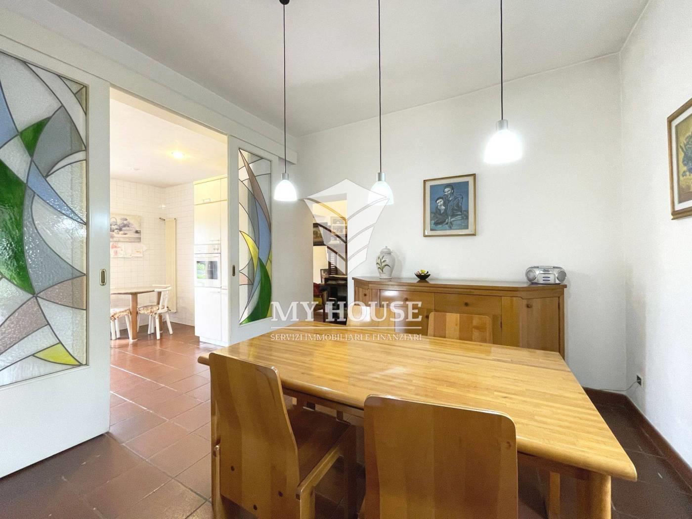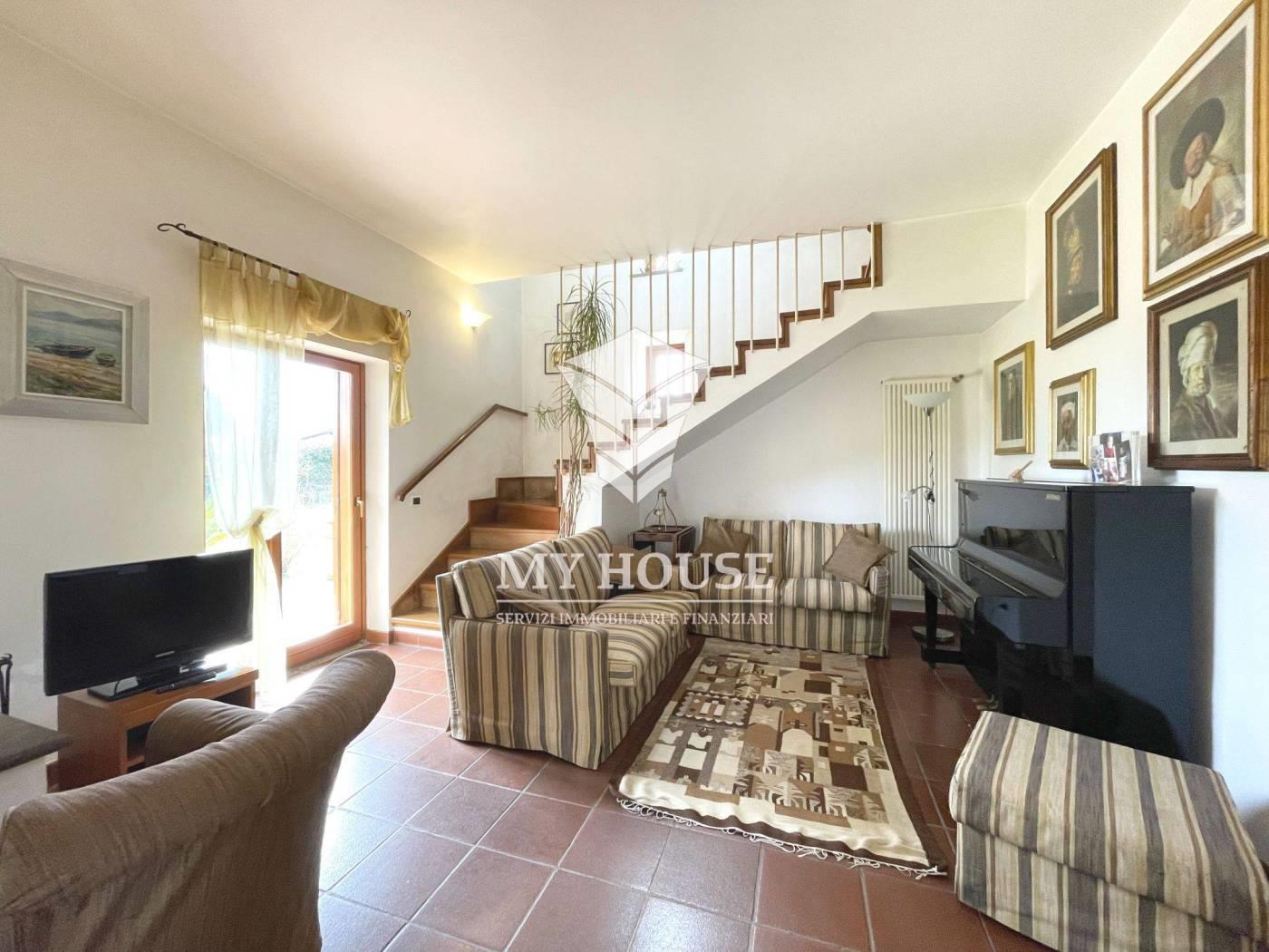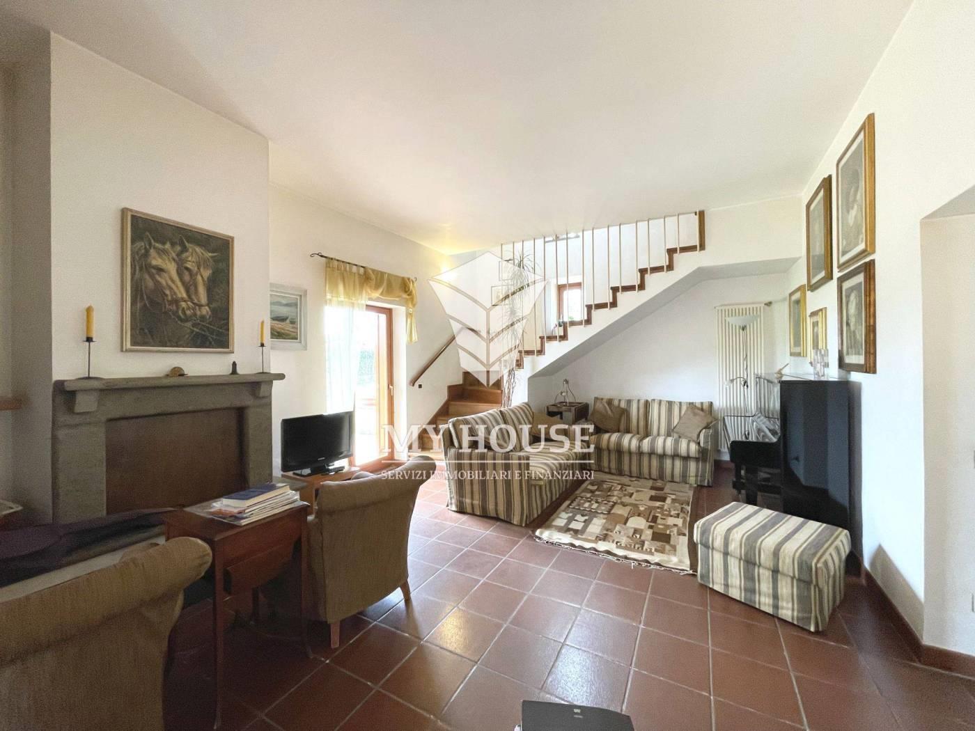 l’immobile si sviluppa su tre livelli fuori terra per un tot. di mq 350 calpestabili e composta come segue: al piano terra (zona giorno), ingresso, un accogliente salotto con camino, cucina abitabile con sala da pranzo, angolo desk, un grande bagno con lavanderia, ripostiglio e un garage di mq 30. al piano 1° (zona notte) in parquet e con notevoli armadi, si presentano tre ampie camere da letto, due comodi bagni (vasca, doccia) e una cameretta/studio con balcone. dal corridoio si ha accesso sulla scala comunicante con l’appartamento al piano 2° ultimo, composto come segue; ingresso indipendente, grande disimpegno, un ampio soggiorno con camino e balcone, cucina abitabile con balcone, corridoio con soppalco, un bagno con vasca e due ampie camere da letto.