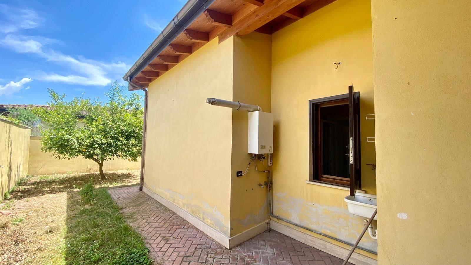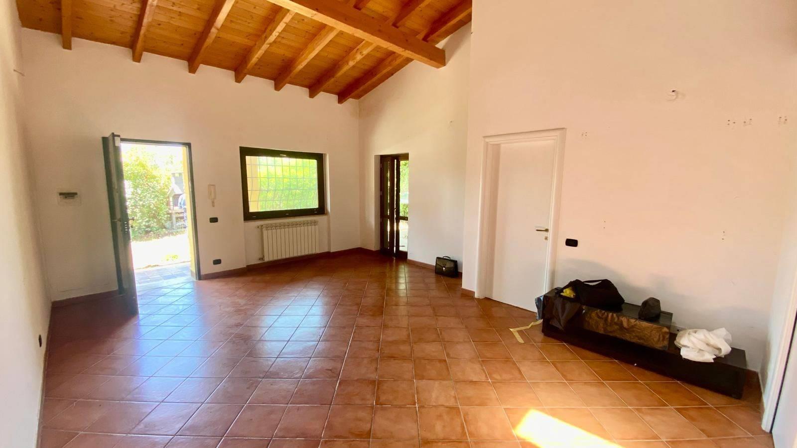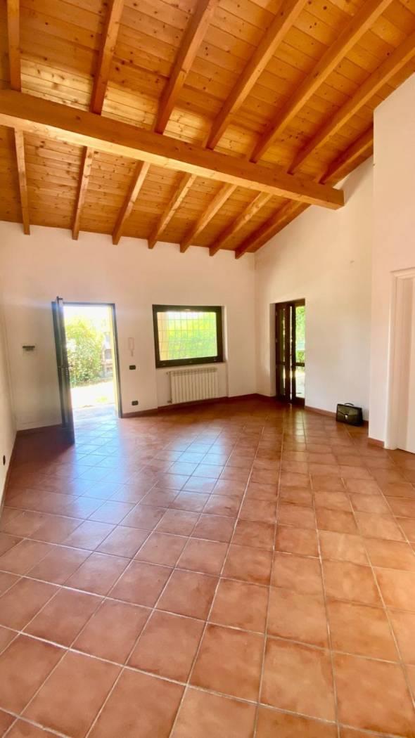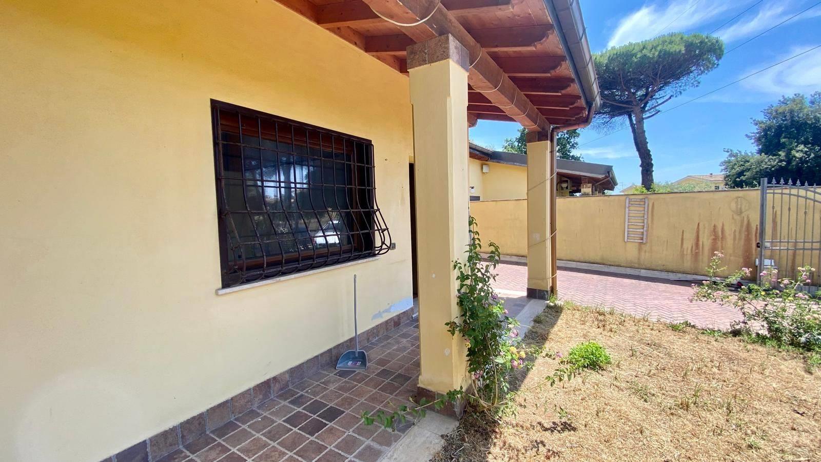 Anzio, in zona residenziale, Via della Cannuccia, a 3,5 km dal mare, Massimo Immobiliare propone la vendita di una villetta bifamiliare su un unico livello di circa 125 mq più giardino di 350 mq. Composta da salone doppio, 3 camere, cucina abitabile, doppi servizi più due zone notti soppalcate. Travi a vista. Internamente è in ottimo stato. Rifinita. Giardino a livello di 350 mq e ampio patio di 30 mq. Barbecue in muratura. 2 posti auto. Esposto su 3 lati. Passo carrabile. Cancello automatico. Persiane blindate e grate. CLASSE D.