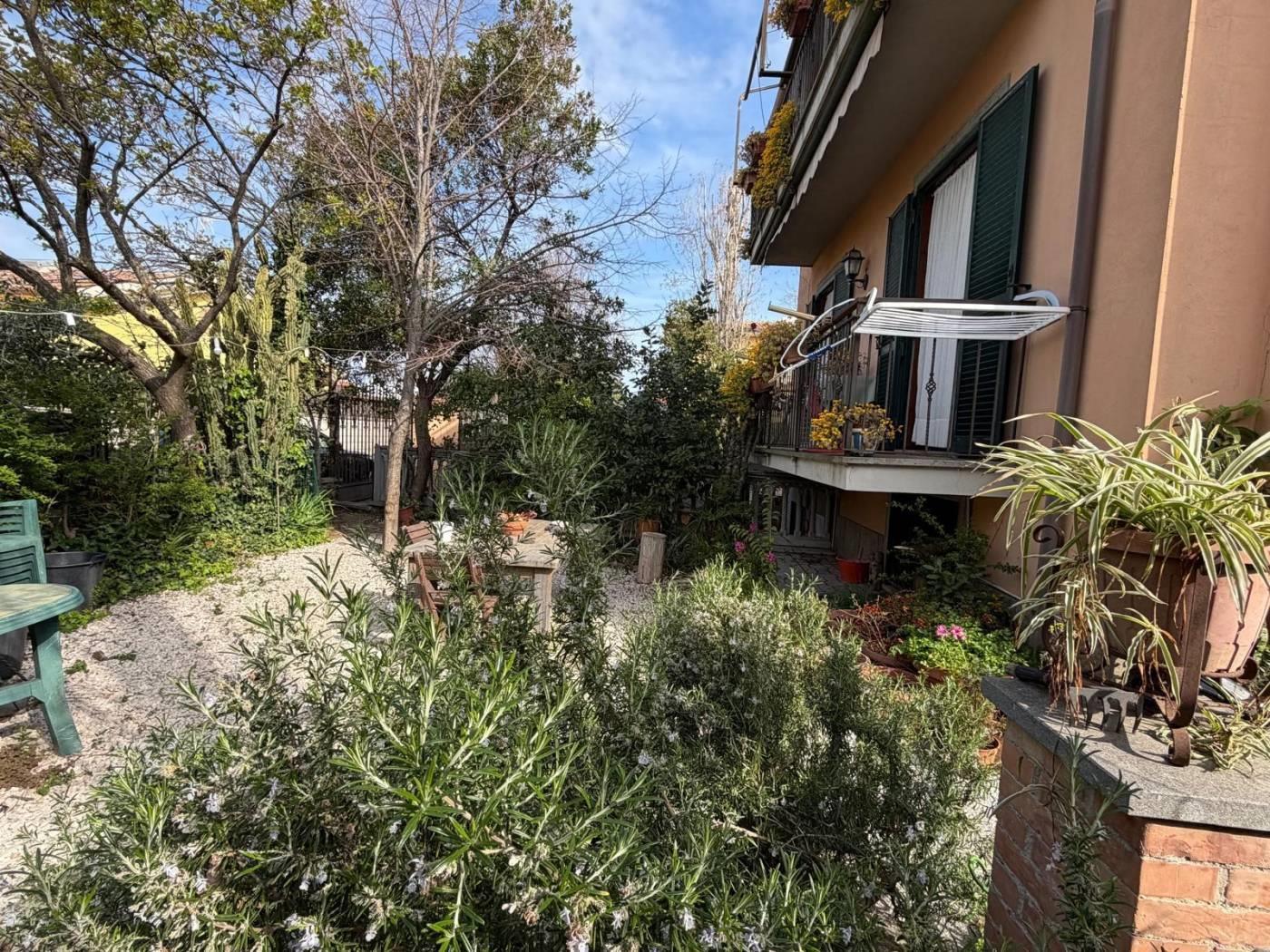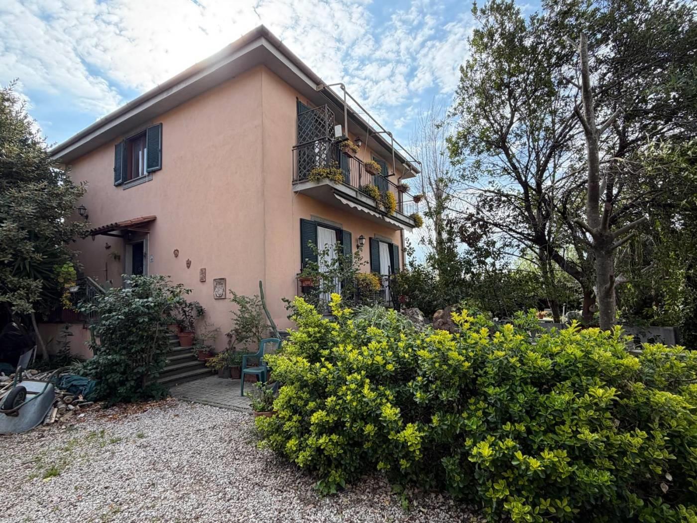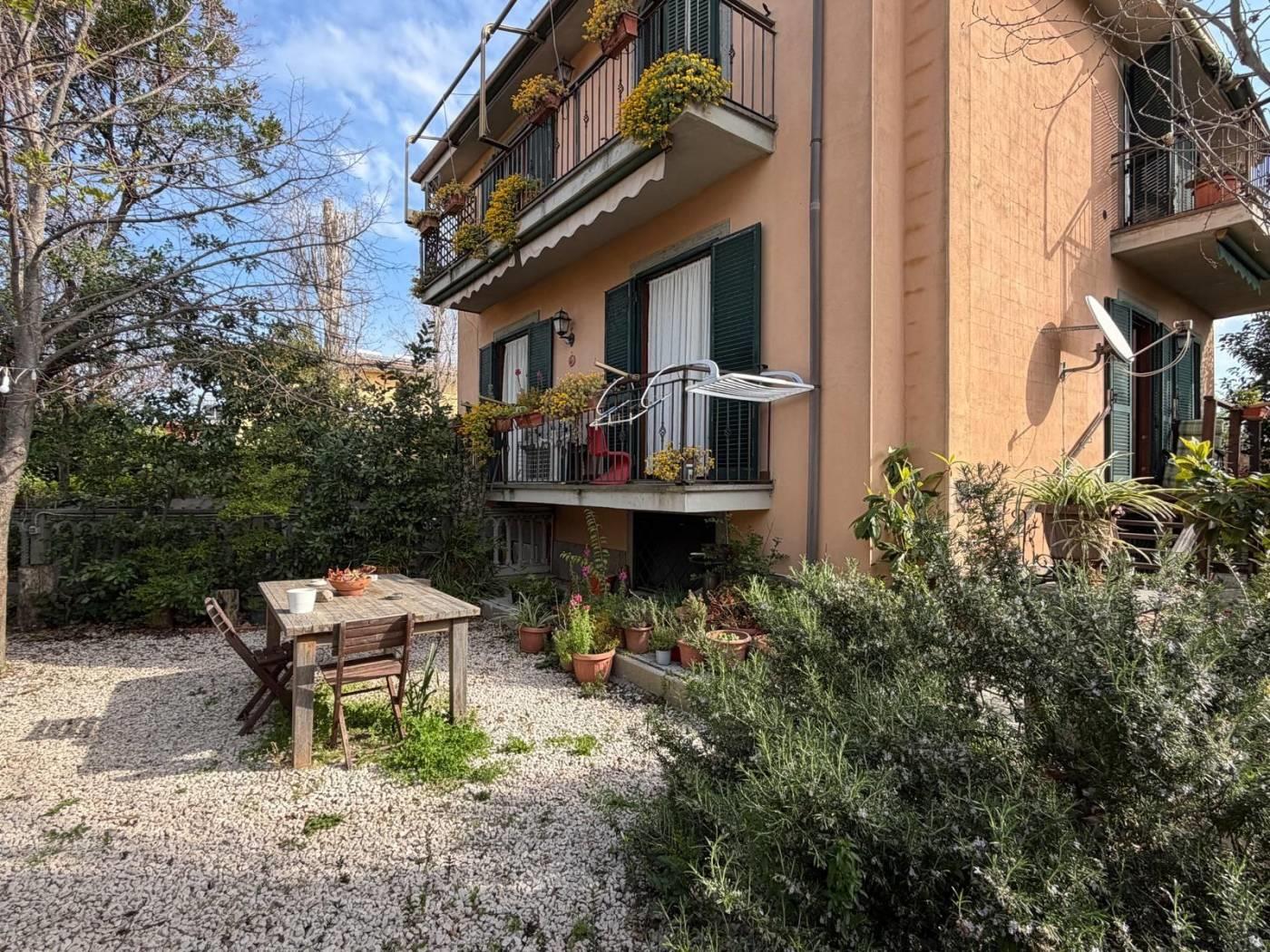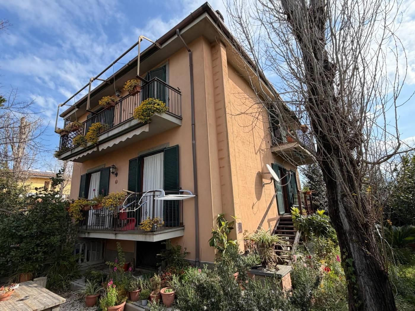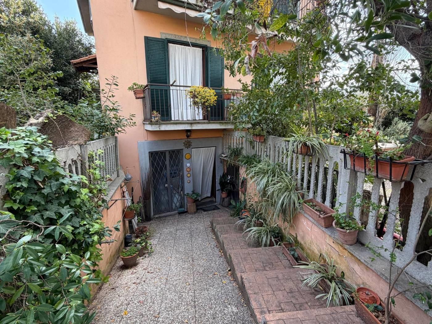 Immobilservice Srl propone in vendita caratteristico appartamento in villa dislocato su due livelli piano terra rialzato e sala hobby con finestre a bocca di lupo, completa la proprietà un giardino su tre lati di 330mq con ingresso sia carrabile che pedonale.
