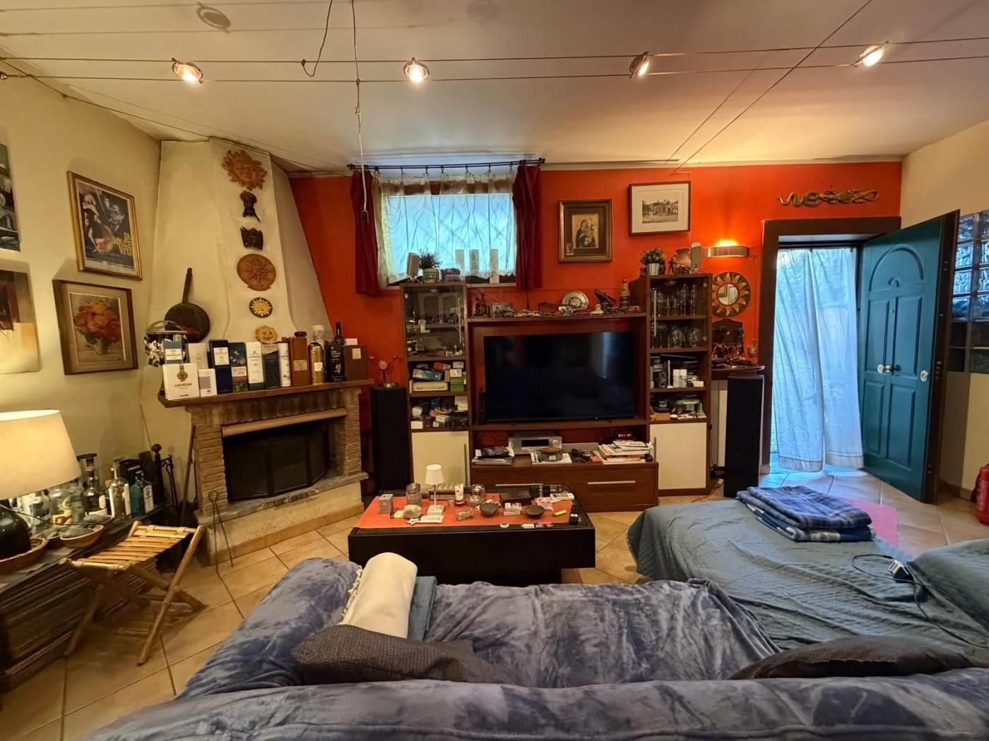 Sala hobby - ambiente unico con camino, angolo cottura, wc, al posto del garage è stata realizzata una camera da letto matrimoniale che all'occorrenza può essere ripristinata a box