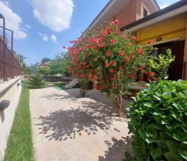 L'Appartamento in Villa è composto al piano rialzato (di mq. 72 interni) da soggiorno con angolo cottura, 2 camere da letto, 2 bagni, oltre a mq. 100 di giardino, terrazzi panoramici e balcone, ed al piano seminterrato (di mq. 42,5 interni + ampia e comoda intercapedine) da ampia sala con finestre fuori terra, servizi finestrati e predisposizione di angolo cottura (possibilità anche di altra stanza finestrata). Dispone inoltre di un comodo box auto di mq. 23 collegato internamente. Predisposizione del camino. Possibilità anche di posto auto scoperto.