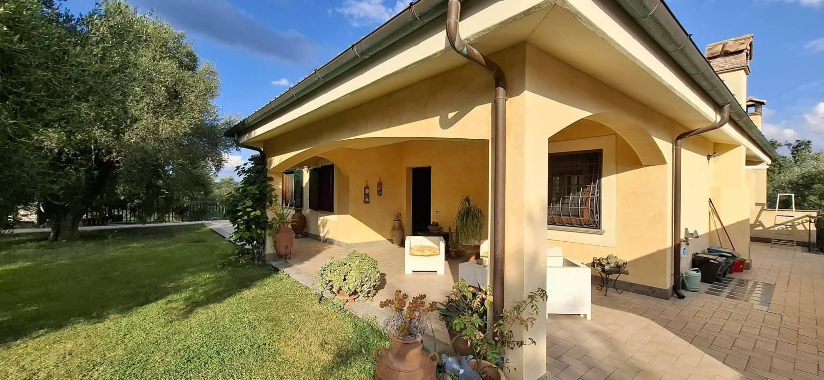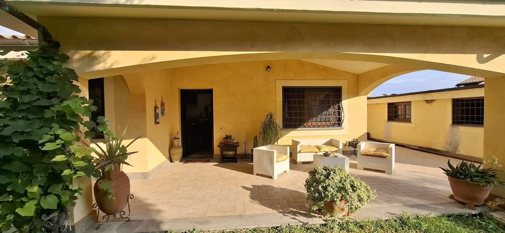 Affittasi piano terra in villa a Riano (RM). L'immobile misura circa 110mq interni, è dotato di comodi spazi all' aperto quali portico, balcone lungo il perimetro, due terrazzi coperti per un totale di circa 76 mq e giardino esclusivo di oltre 100 mq, vantando inoltre due posti auto di cui uno interno e uno esterno su corte privata, nonché una meravigliosa vista panoramica. All' ingresso troviamo un grande soggiorno con camino e accesso ad entrambi i portici, angolo cottura con finestra, disimpegno, camera matrimoniale, cameretta, bagno con vasca e bagno con doccia (entrambi con finestra), lavanderia/ripostiglio. L' immobile viene locato ammobiliato come in foto. Si accede tramite cancello elettrico e pedonale condiviso con l' appartamento al piano seminterrato. La casa è dotata di infissi in alluminio con doppio vetro, inferriate di sicurezza, impianto tv centralizzato con parabola, riscaldamento autonomo con Gpl, aria condizionata canalizzata in tutto l'immobile. L' ingresso all' immobile dall' esterno prevede 8 gradini come si evince dalle immagini. La locazione con contratto 3+2 è fissata a 1000 € mensili CON FIDEIUSSIONE BANCARIA DI 12 MESI, no condominio, deposito cauzionale di tre mensilità; il presente annuncio è rivolto SOLO a persone REFERENZIATE. Per maggiori informazioni contattare il 3515652903. *Le presenti informazioni e planimetrie sono meramente indicative e non costituiscono elementi contrattuali.*