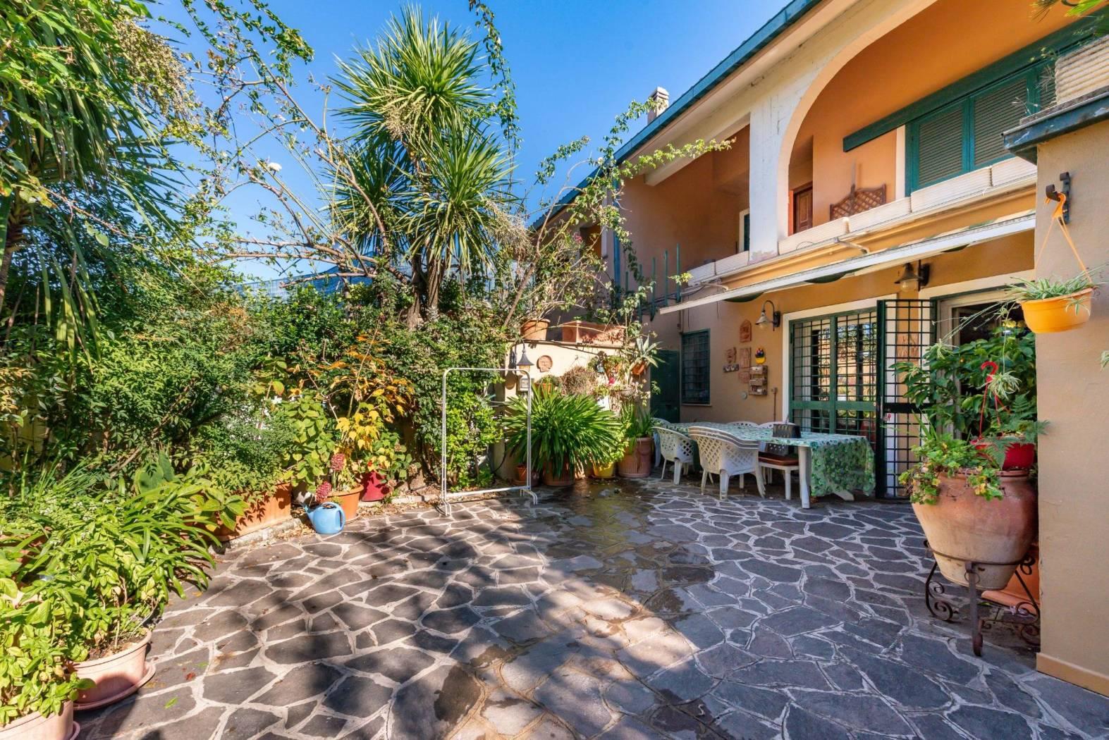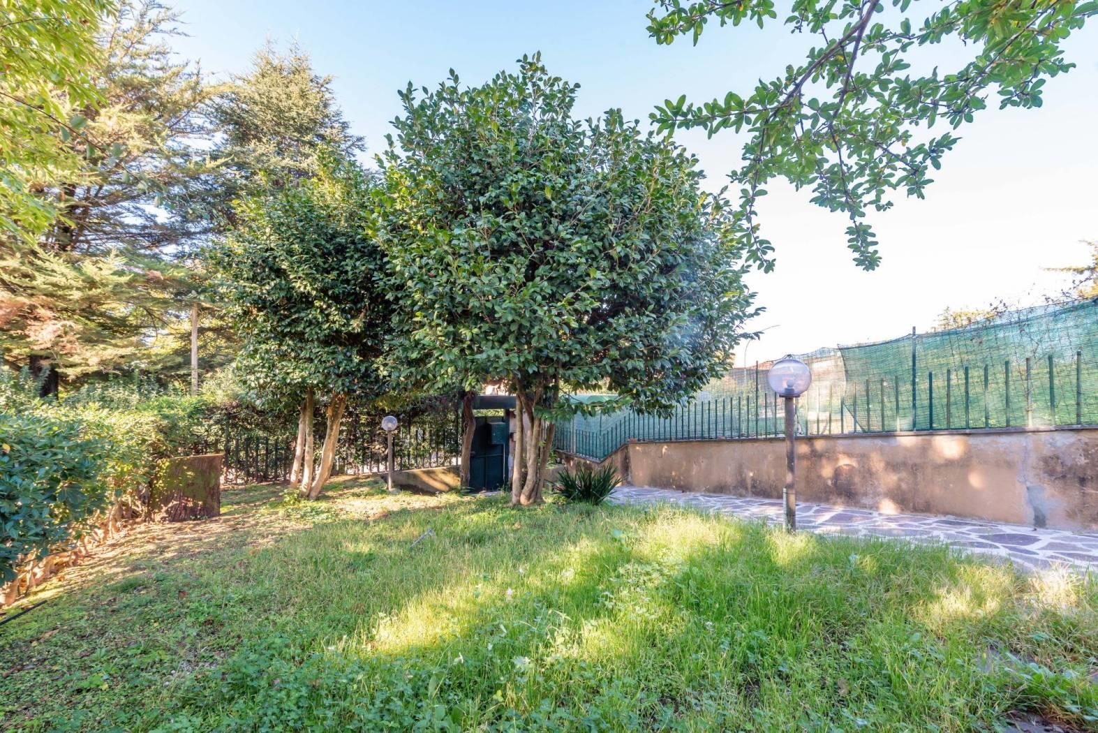 La proprietà è arricchita da piacevoli spazi esterni: un ampio terrazzo vivibile e una loggia coperta che permettono di godere della vista aperta e della luminosità dell’esposizione durante tutto l’arco della giornata. Nel giardino è presente anche una zona conviviale con forno a legna in muratura e area barbecue, ideale per pranzi e cene all’aperto.