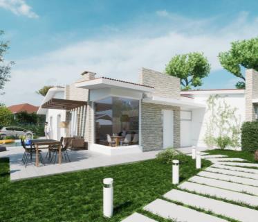 - al piano terra (150 mq), ingresso, un ampio salone con camino e ampie vetrate sul giardino, una sala da pranzo, grande cucina, una stanza/studio, un bagno ospiti, una grande suite padronale con bagno interno;