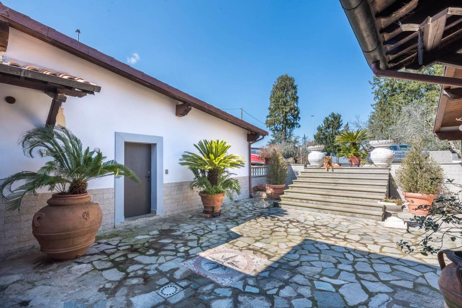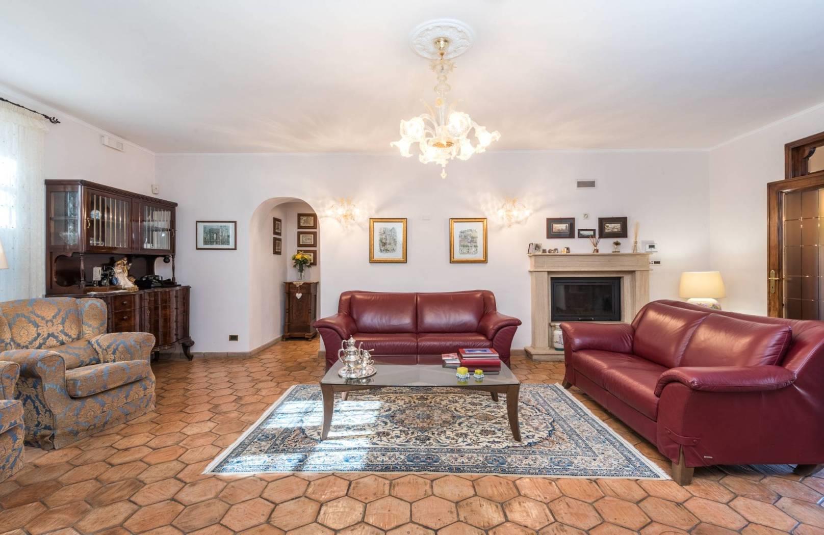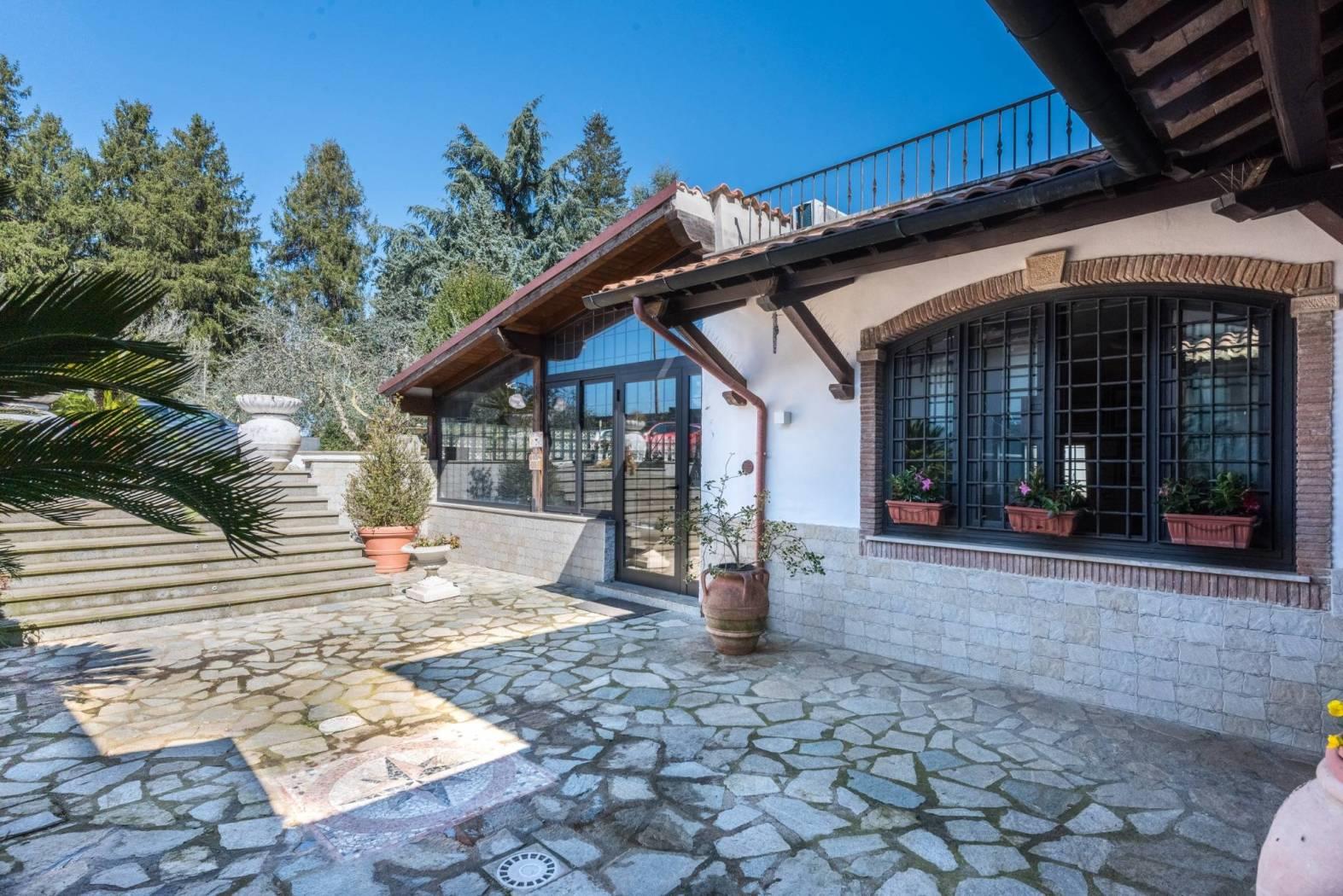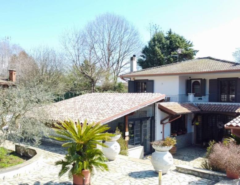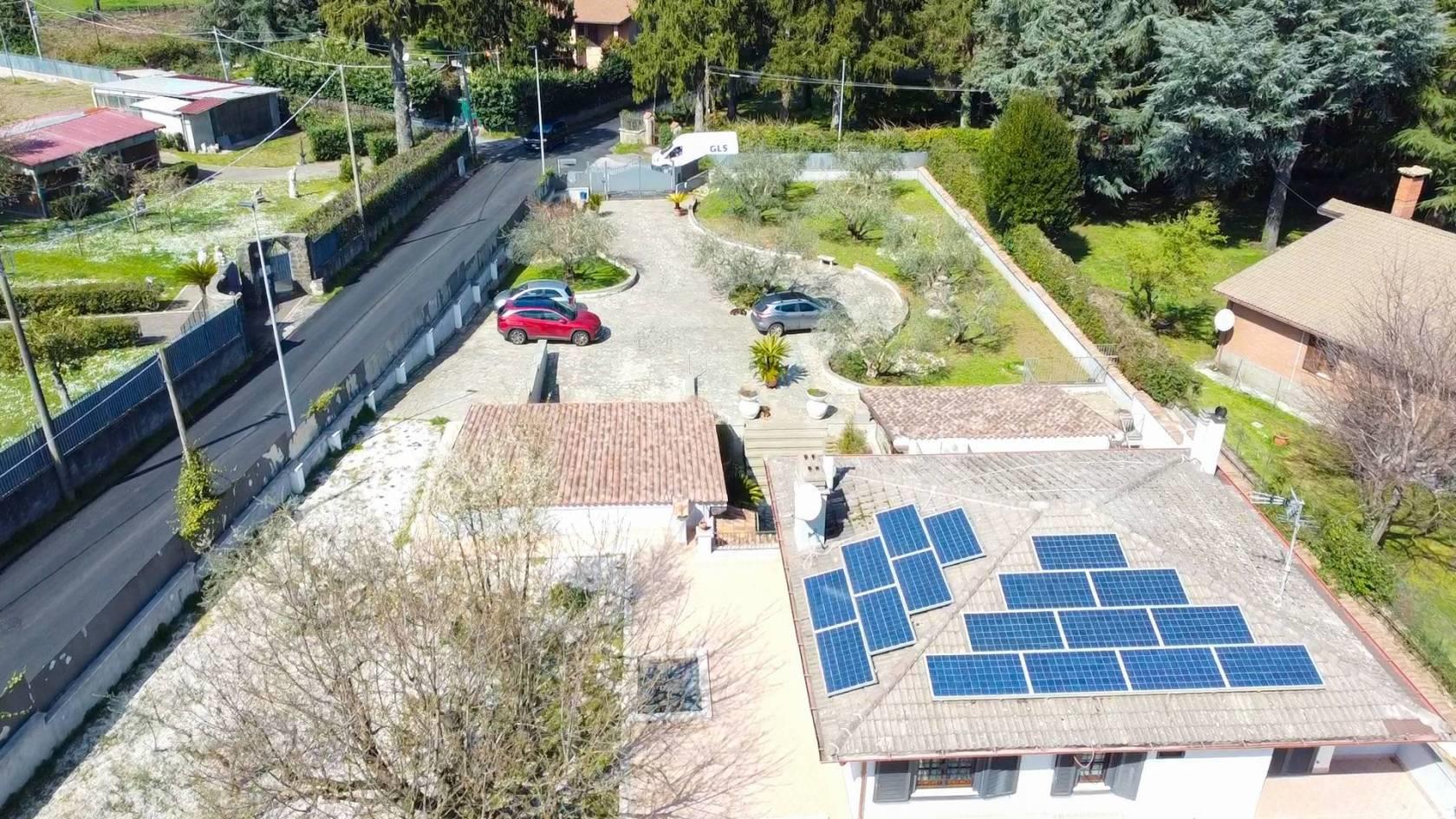 ROCCA PRIORA Grande villa unifamiliare su due livelli composta al piano terra da veranda d'ingresso, salone con termocamino, grande cucina con camino, grande studio (praticamente un altro salone), cameretta, bagno, locale di servizio uso dispensa/lavanderia/ripostiglio, e grande serra climatica ad uso locale ricreativo. Al primo piano troviamo una camera padronale con cabina armadio e bagno privato e altre due camere con altro bagno. Ampi terrazzi. Garage per tre macchine con bagno di servizio. Giardino di circa 2.000 mq. in gran parte lastricato, con molti alberi di ulivo ed altre piante, sia ornamentali che da frutto. Ottima esposizione. Tutta la proprietà è stata completamente ristrutturata con ottime rifiniture e materiali di gran pregio ed è completamente domotizzata. Ampi terrazzi. Dotata di impianto fotovoltaico da 5,5 Kw. Zona residenziale.