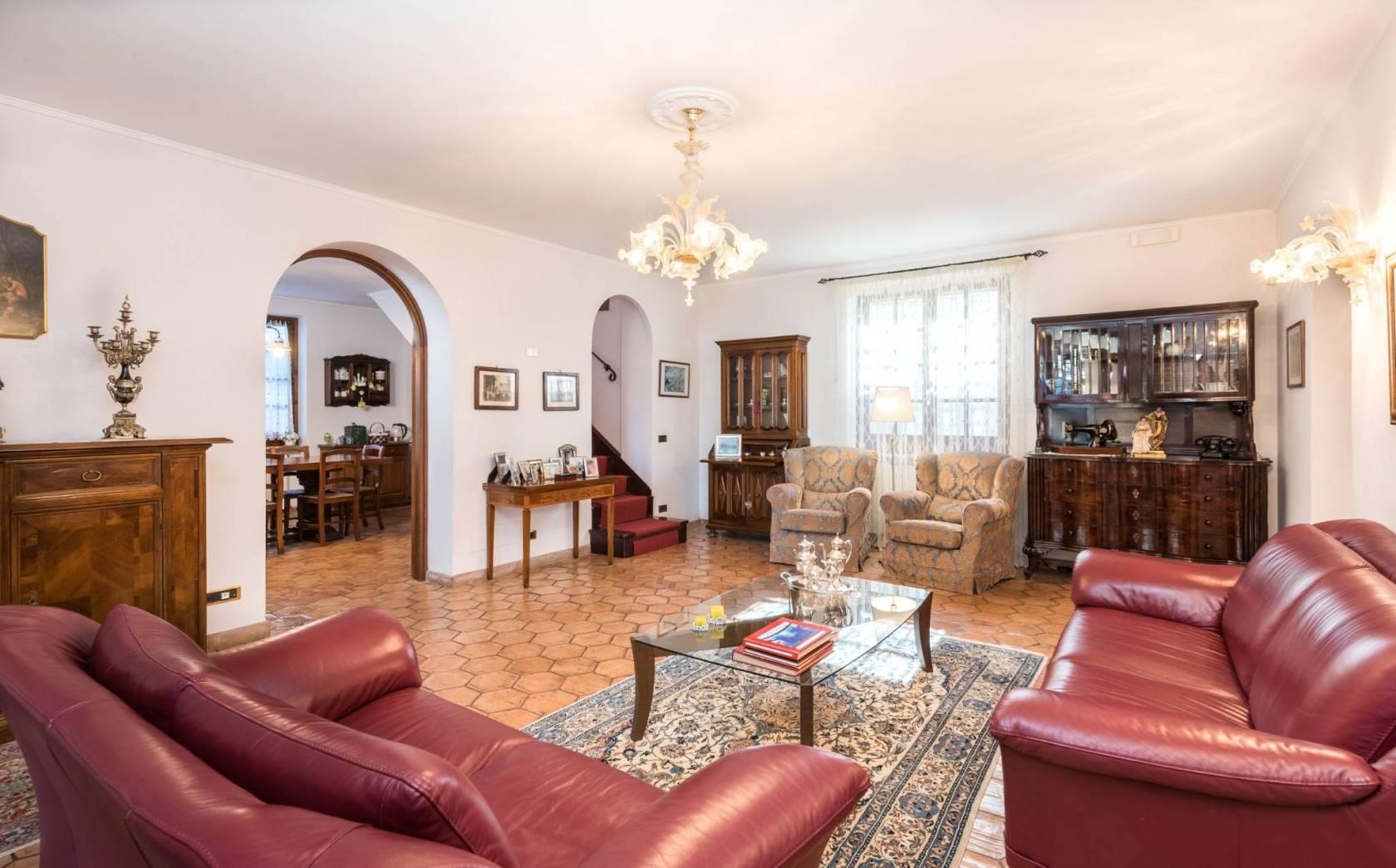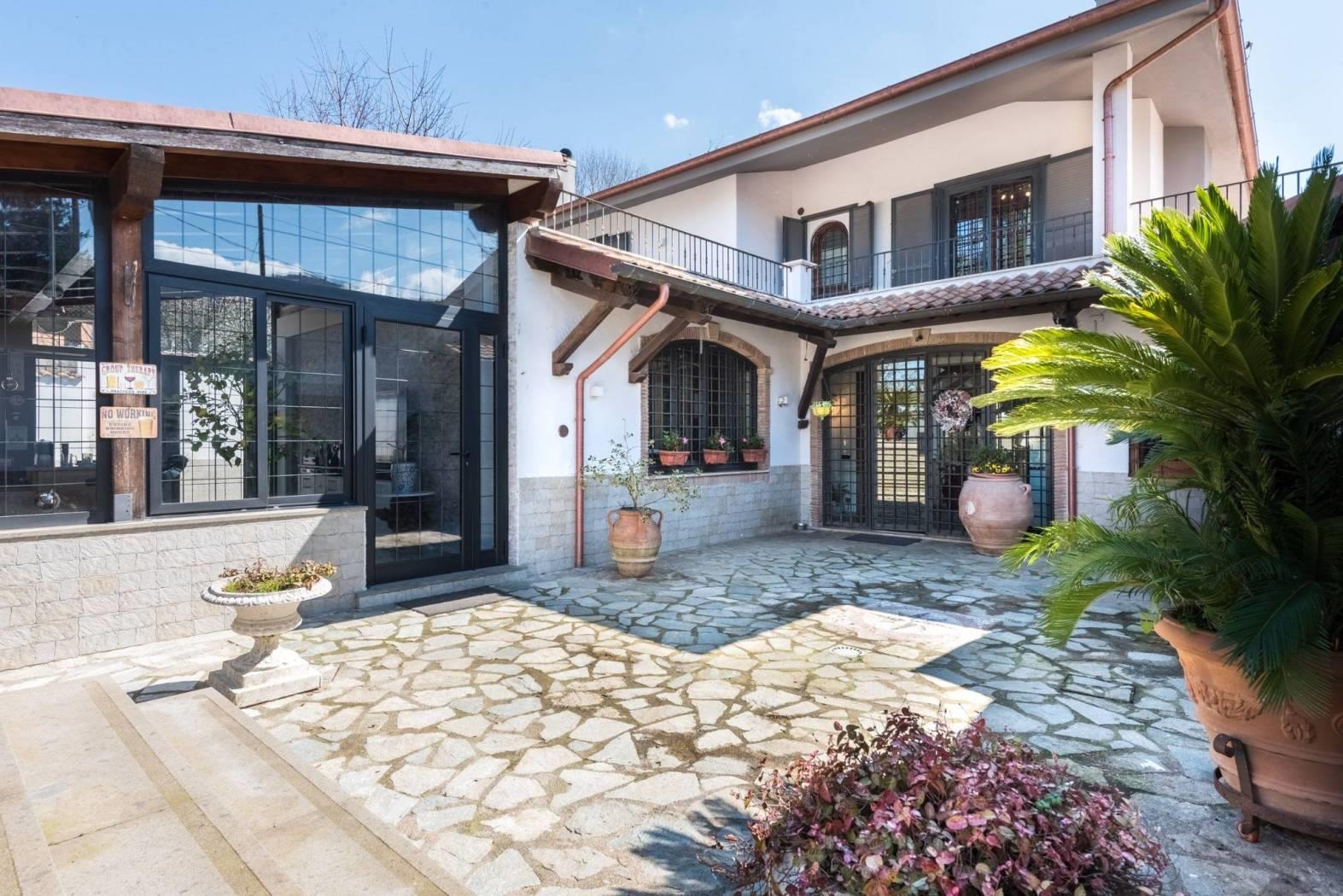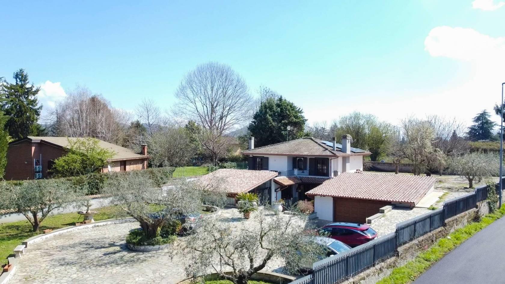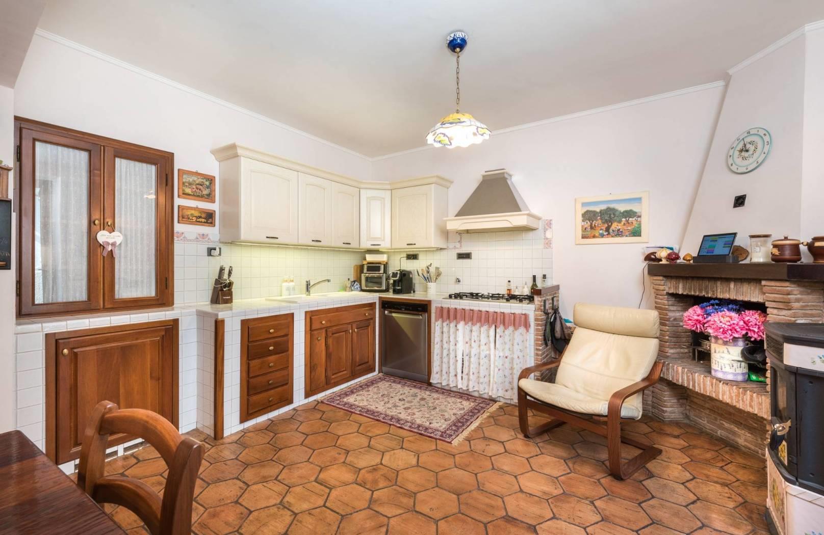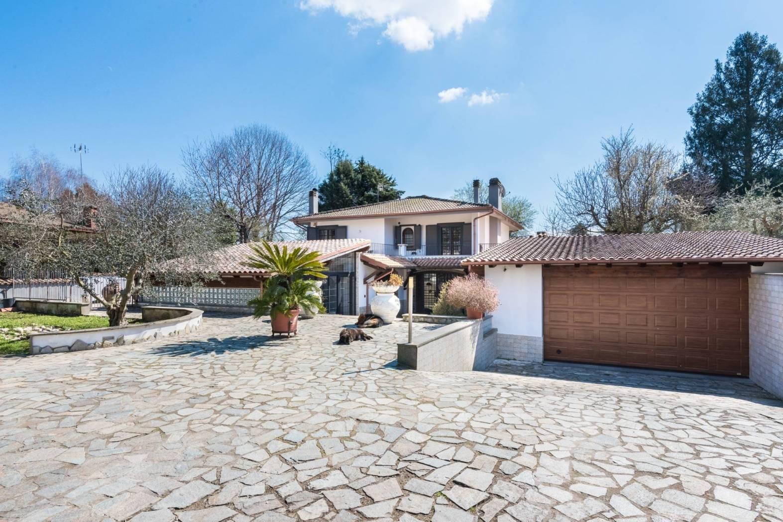 ROCCA PRIORA Grande villa unifamiliare su due livelli composta al piano terra da veranda d'ingresso, salone con termocamino, grande cucina con camino, grande studio (praticamente un altro salone), cameretta, bagno, locale di servizio uso dispensa/lavanderia/ripostiglio, e grande serra climatica ad uso locale ricreativo. Al primo piano troviamo una camera padronale con cabina armadio e bagno privato e altre due camere con altro bagno. Ampi terrazzi. Garage per tre macchine con bagno di servizio. Giardino di circa 2.000 mq. in gran parte lastricato, con molti alberi di ulivo ed altre piante, sia ornamentali che da frutto. Ottima esposizione. Tutta la proprietà è stata completamente ristrutturata con ottime rifiniture e materiali di gran pregio ed è completamente domotizzata. Ampi terrazzi. Dotata di impianto fotovoltaico da 5,5 Kw. Zona residenziale.