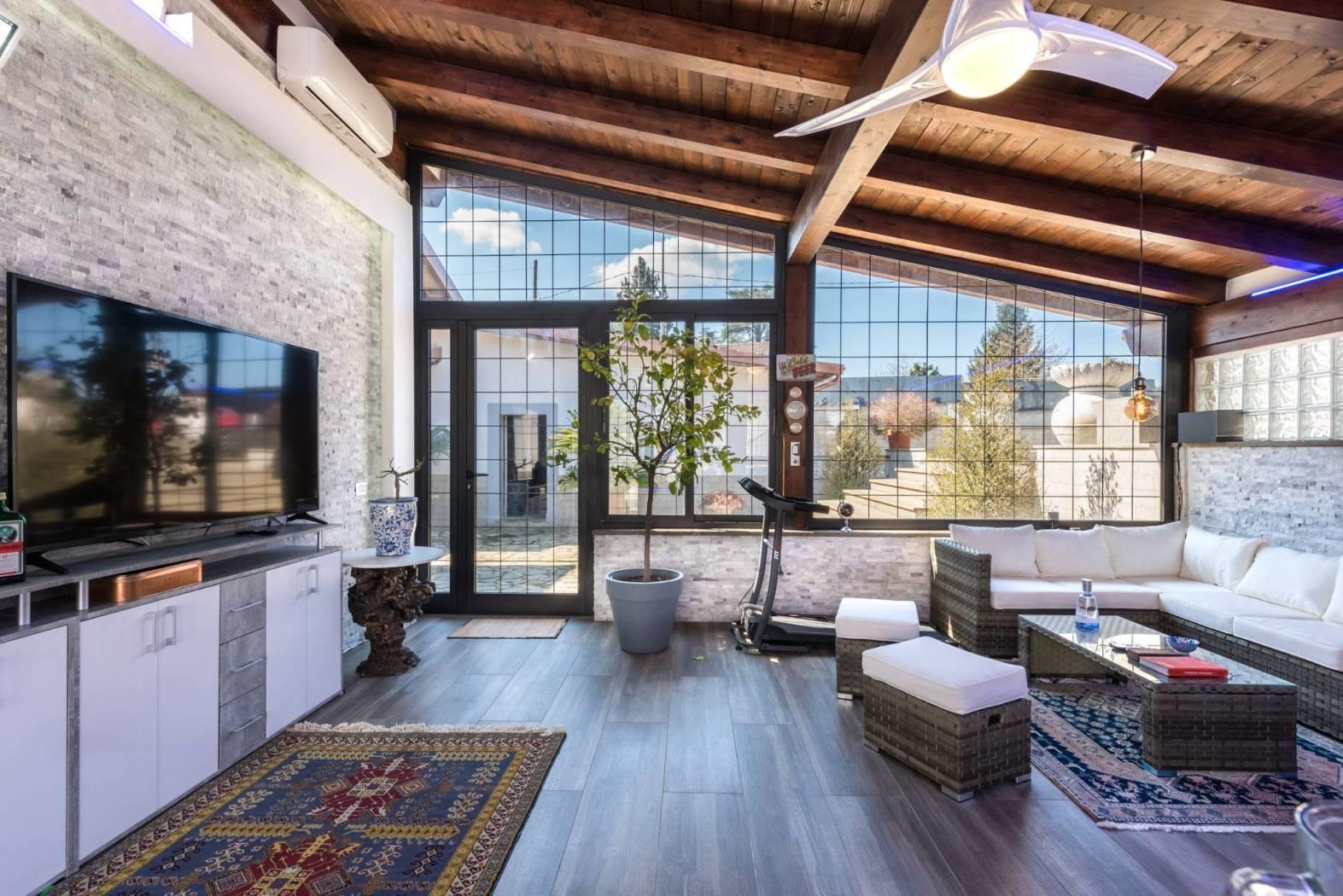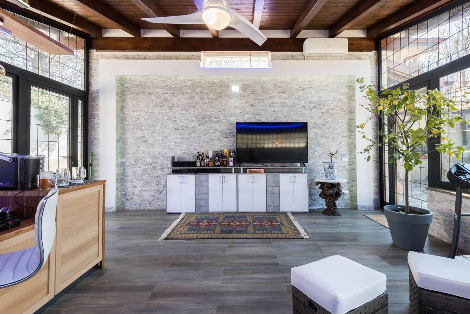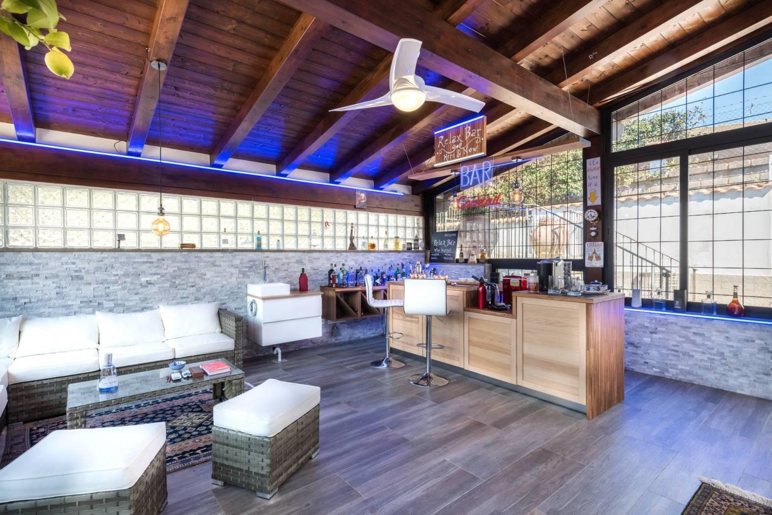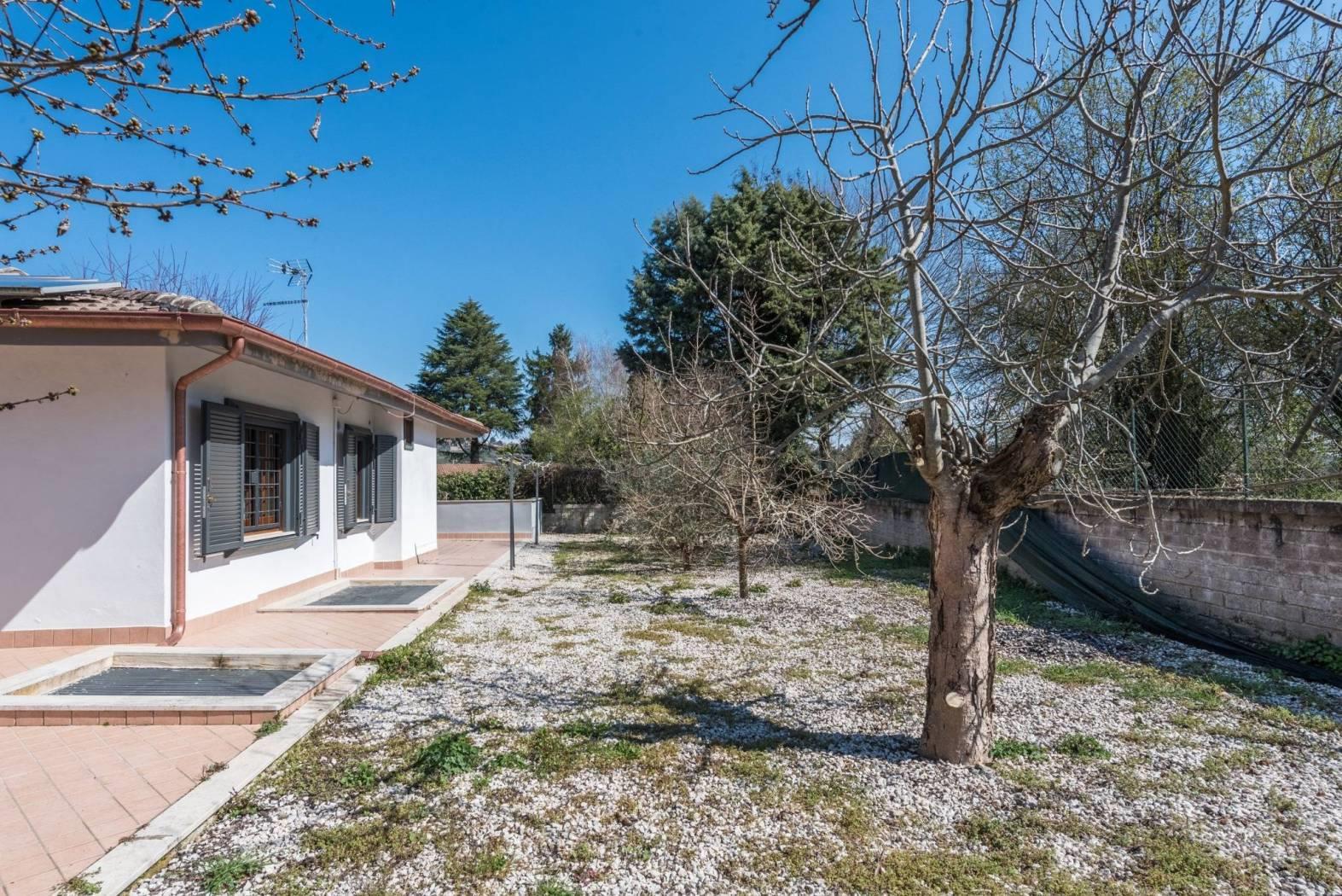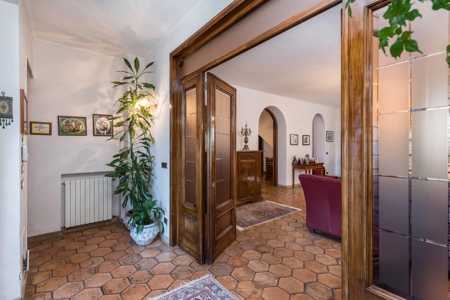 ROCCA PRIORA Grande villa unifamiliare su due livelli composta al piano terra da veranda d'ingresso, salone con termocamino, grande cucina con camino, grande studio (praticamente un altro salone), cameretta, bagno, locale di servizio uso dispensa/lavanderia/ripostiglio, e grande serra climatica ad uso locale ricreativo. Al primo piano troviamo una camera padronale con cabina armadio e bagno privato e altre due camere con altro bagno. Ampi terrazzi. Garage per tre macchine con bagno di servizio. Giardino di circa 2.000 mq. in gran parte lastricato, con molti alberi di ulivo ed altre piante, sia ornamentali che da frutto. Ottima esposizione. Tutta la proprietà è stata completamente ristrutturata con ottime rifiniture e materiali di gran pregio ed è completamente domotizzata. Ampi terrazzi. Dotata di impianto fotovoltaico da 5,5 Kw. Zona residenziale.
