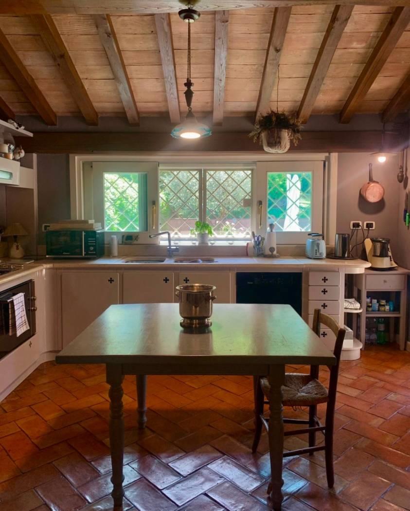 La corte, di rara bellezza, contribuisce all'ingresso dell'abitazione principale, dove ci accoglie un luminoso ingresso affacciato su un giardino d'inverno. Al suo interno, il salone triplo, impreziosito da un grande camino e da ampie vetrate che si affacciano sul verde, si integra armoniosamente con la zona pranzo e una cucina abitabile, creando un ambiente perfetto per vivere momenti di convivialità.