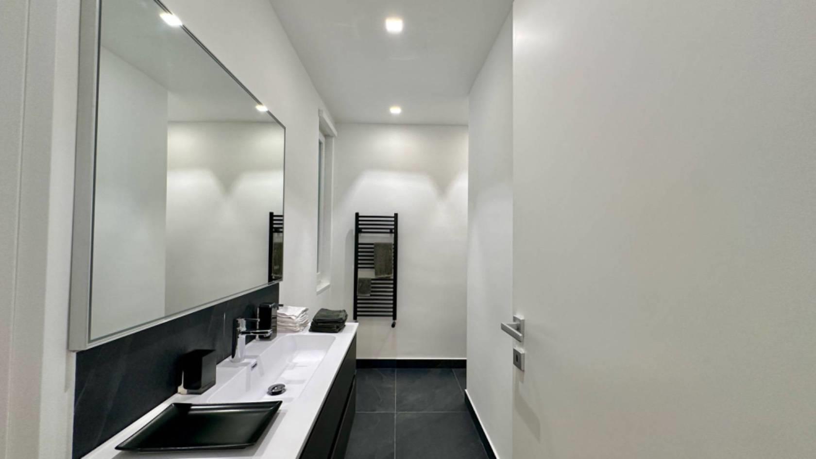 Salendo al piano superiore, scoprirete una suite elegante con due cabine armadio e un bagno privato. A completare il piano, un'ulteriore camera matrimoniale con bagno, mentre è possibile ripristinare facilmente una terza camera, adattandosi così alle vostre esigenze di spazio.