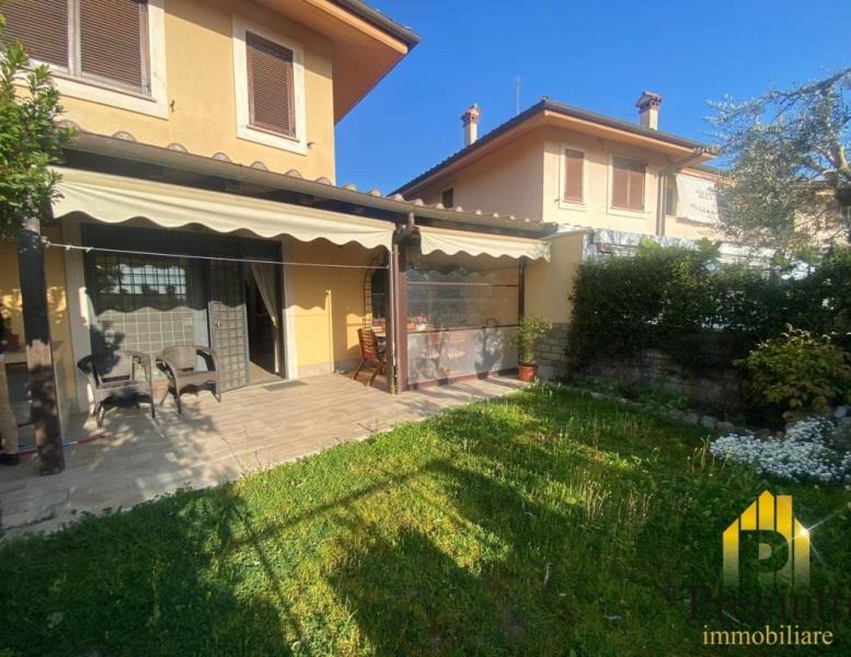 - Piano Terra: di Mq. 79,00, ingresso carrabile e pedonale, due giardini di 50,00 + 50,00 mq. di cui uno ( quello del salone) con portico in legno di 20 mq., tenda da sole, barbecue, patio con vetrate scorrevoli per l'utilizzo anche nei periodi invernali e affaccio luminosissimo, ingresso, cucina abitabile, salone doppio, camera, bagno senza finestra;