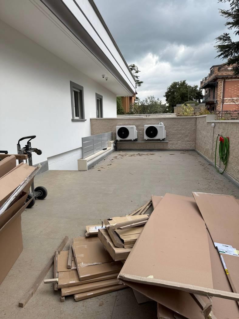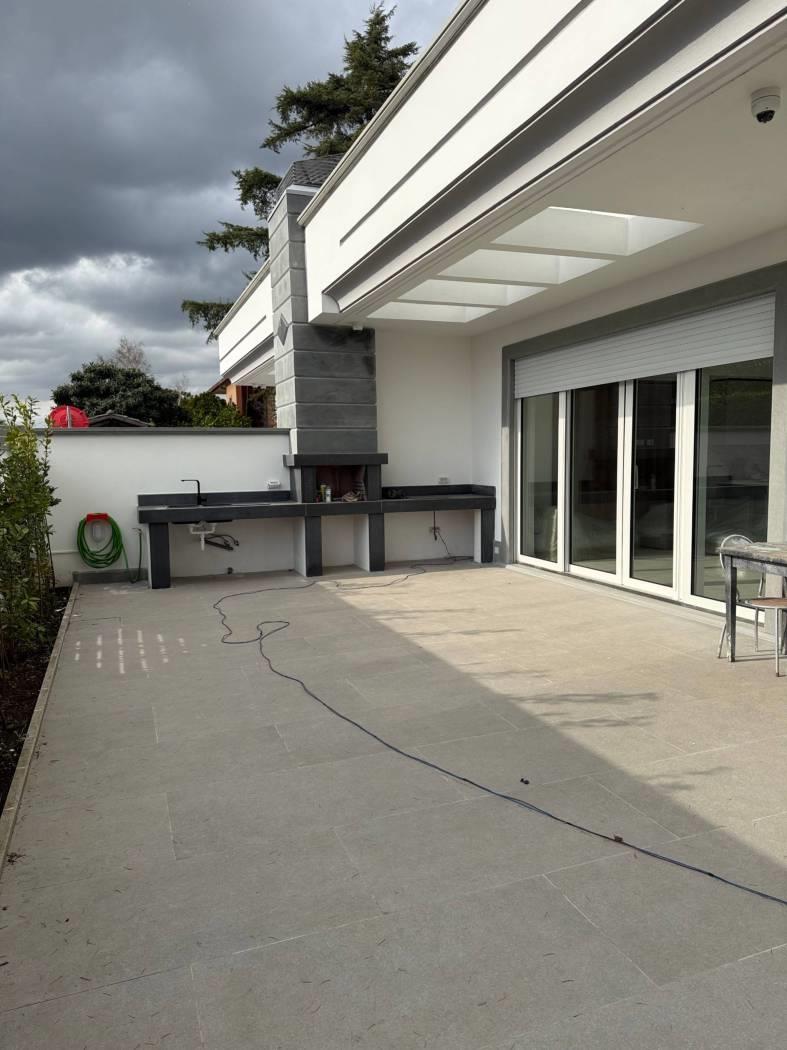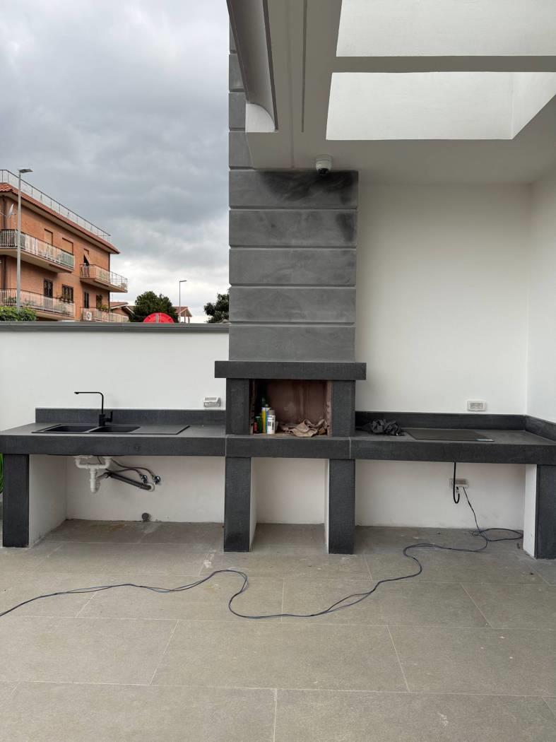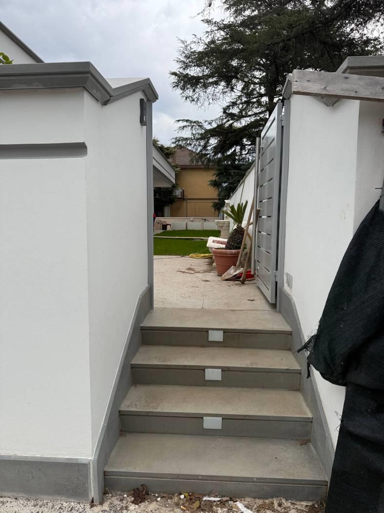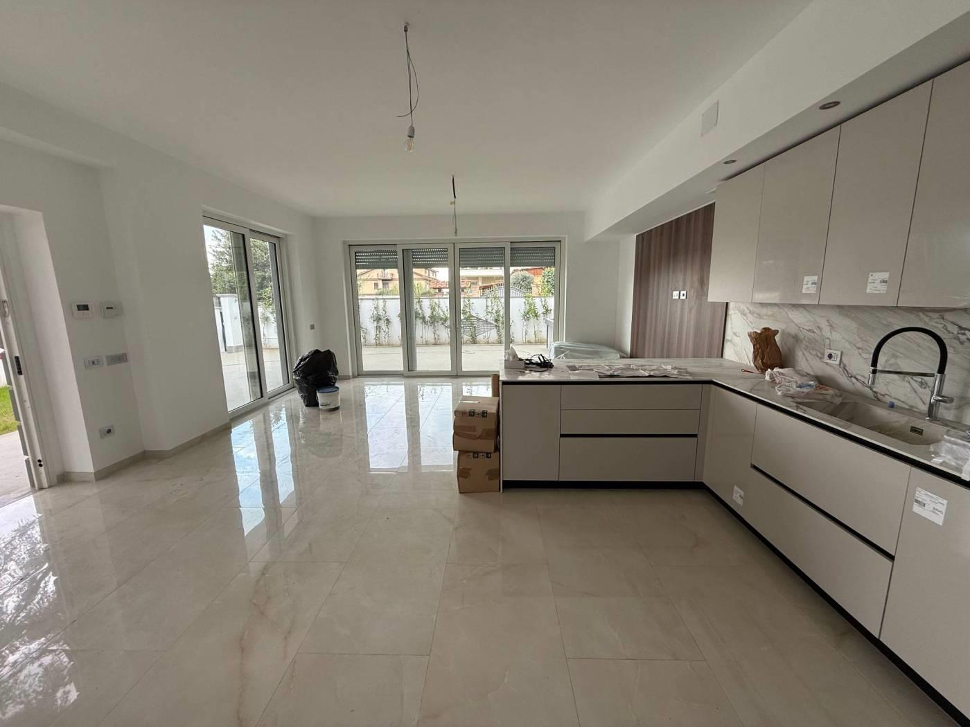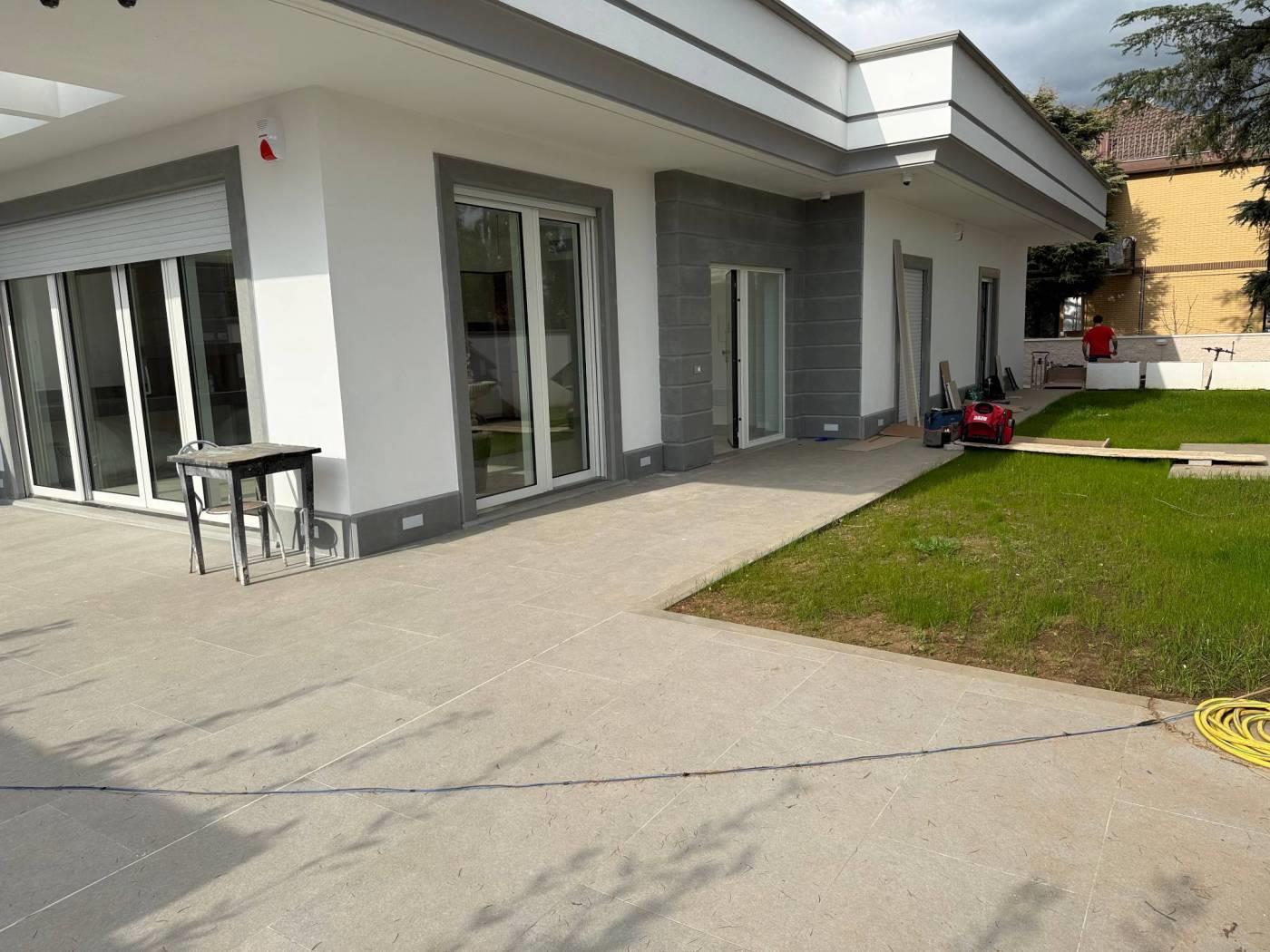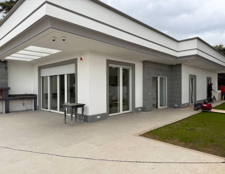 Proponiamo in vendita una meravigliosa villa di lusso,super rifinita,di nuova costruzione,di 125 mq,tutti su un piano,più 300 di giardino perimetrale.La villa si compone di un grande salone di 50 mq con angolo cottura,due ampie camere da letto,di cui una con cabina armadio,una cameretta (predisposta per lavanderia)e giardino perimetrale con patio di 25 mq e Barbecue con piano cottura e lavandino Inoltre 2/3 posti auto con cancello elettrico .La villa dispone di riscaldamento e raffreddamento a fan coil fotovoltaico,con impianto di canalizzazione a soffitto controllabile da remoto, ceramica effetto marmo,impianto termico/solare di 5 kw, ad inverter, con predisposizione per le batterie di accumulo,serrande elettriche anti taglio centralizzate,vetrate blindate,impianto di video sorveglianza ,videocitofono,luci a led perimetrali esterne che illuminano il giardino sia dal basso che dall'alto. Completa la proprietà una cantina con entrata indipendente dal giardino,che copre tutta la superficie della villa con predisposizione per un servizio.Inoltre, adiacente al fabbricato,4 posti auto utilizzabili dagli ospiti.Libera.I mobili che si vedono nelle foto non sono compresi nel prezzo