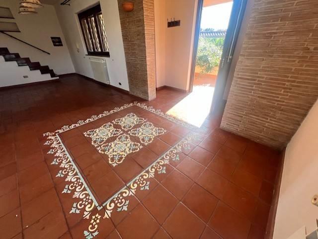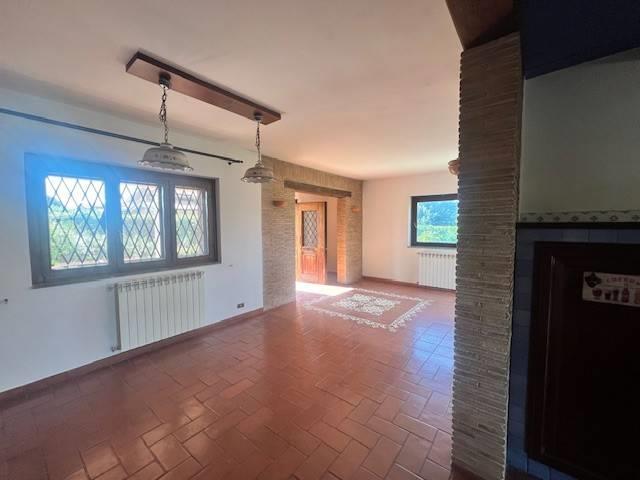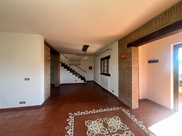 Bracciano, a circa trecento metri, dalla fermata ferroviaria di Vigna di Valle linea Roma - Viterbo, in zona residenziale, proponiamo in esclusiva una meravigliosa ed unica porzione di villa trifamiliare disposta su tre livelli, composta al piano terra da un grande salone - pranzo con camino, una cucina in muratura ed un bagno con doccia più un doppio affaccio su i due grandi portici aventi accesso al terreno esclusivo ed al cortile con pergolato.