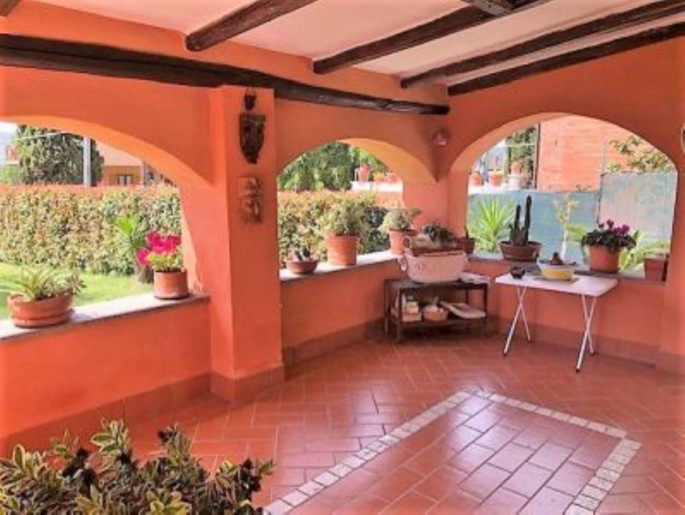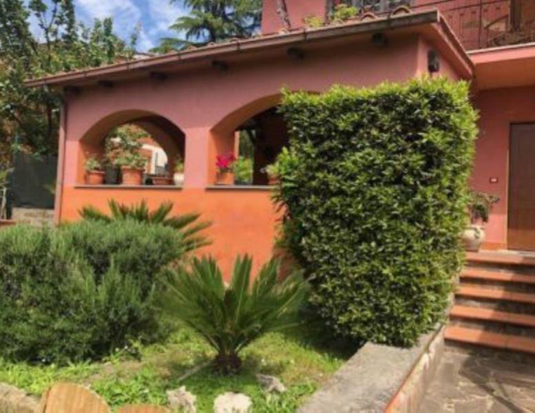 CAMPAGNANO POGGIO DELL' ELLERA VILLA UNIFAMILIARECampagnano di Roma Poggio dellEllera Splendida villa unifamiliare situata in posizione dominante circondata da 1200 mq di giardino. Su due livelli, attualmente e divisa anche catastalmente in due appartamenti per complessivi 300 mq. Dal cancello un viale lastricato porta verso ledificio che risulta rialzato rispetto al terreno. Il primo piano e cosi costituito: Salone con camino, grande cucina, 3 camere, bagno, ampia terrazza in parte con portico in muratura, in parte con gazebo; al primo piano troviamo: salone con camino, ampia cucina, 3 camere, due bagni. Nella parte sottostante ampio box di 30 mq. Tutto limmobile e ristrutturato, situato nella parte migliore di Poggio dellEllera vicino ai servizi in particolare ai mezzi di collegamento con Roma e con la stazione di Cesano.