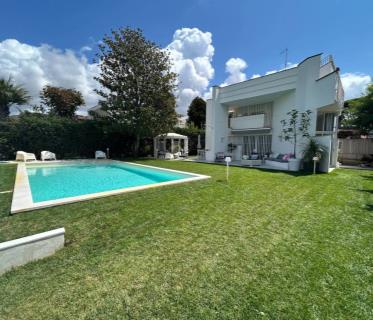 Villa unifamiliare di circa 150 mq nella zona più esclusiva di Fregene, a 200 metri dal mare e dal rinomato Villaggio dei pescatori, composta da salone, con terrazza che affaccia sul giardino privato, cucina abitabile con passavivande, 1 camera matrimoniale con bagno, 2 camerette doppie ed un altro bagno a servizio delle due camerette, al piano rialzato. Nella zona piano terra, taverna, 1 camera matrimoniale con bagno, 1 cameretta altro bagno. Completano la villa un piloti ed un giardino privato di circa 800mq. La villa ha accesso da strada privata con cancello ad uso esclusivo di quattro ville. SOLO SETTEMBRE Per appuntamenti chiamare il 3496873409