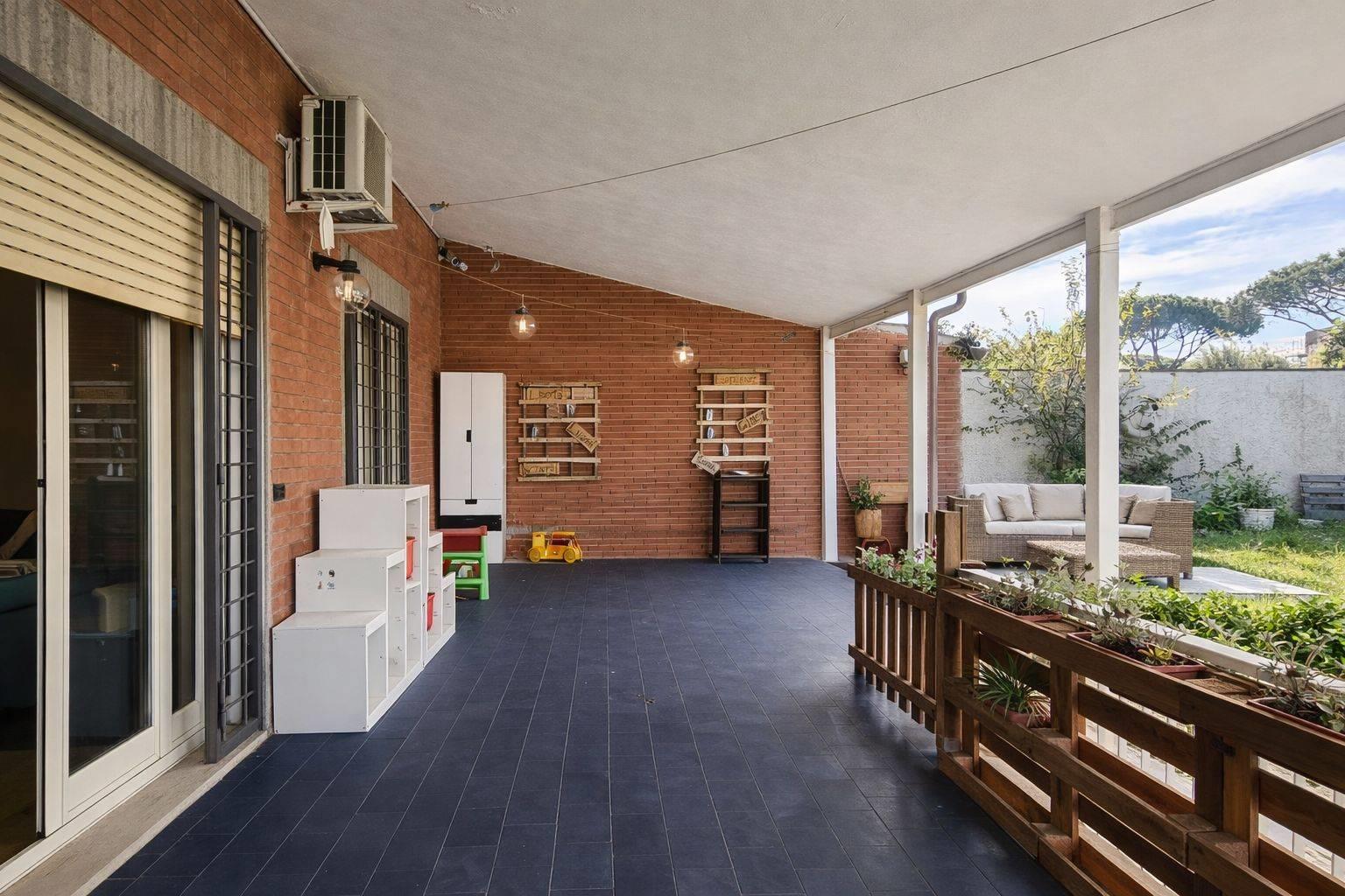 Nel cuore verde di Casal Palocco, proponiamo in vendita una porzione di villa bifamiliare con il giardino privato di circa 600 mq.