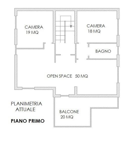 - piano 1: open space di 50 mq, altre due camere e un bagno – 120 MQ