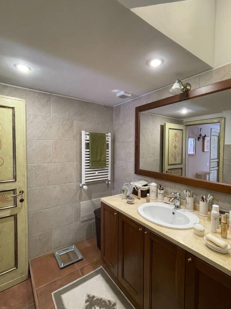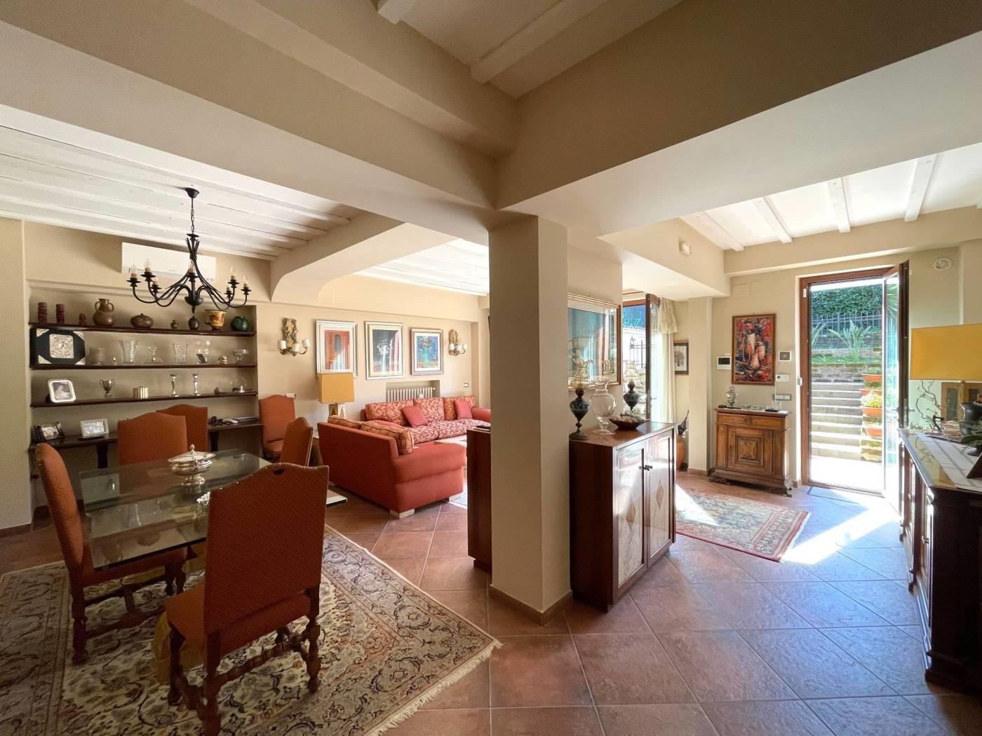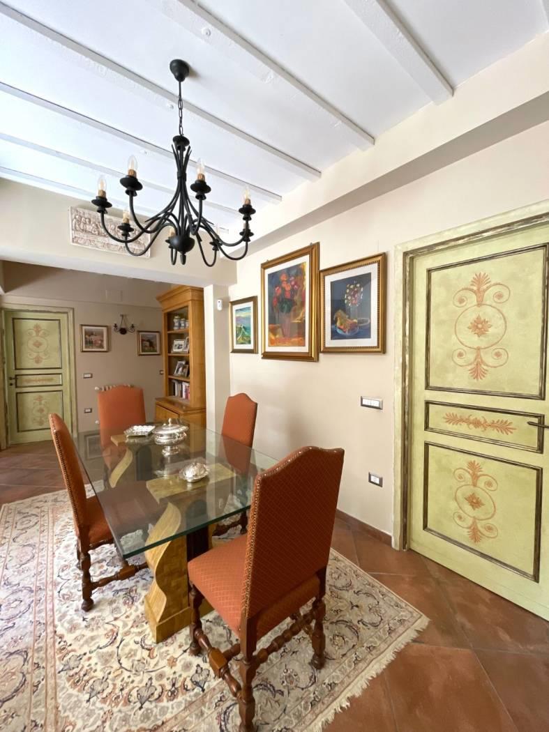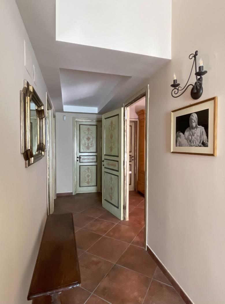 La casa, recentemente ristrutturata, con finiture e materiali di pregio, è curata in ogni suo ambiente e presenta la pavimentazione in gres porcellanato effetto cotto ed il soffitto con travi in legno a vista, che creano un’atmosfera calda ed accogliente.