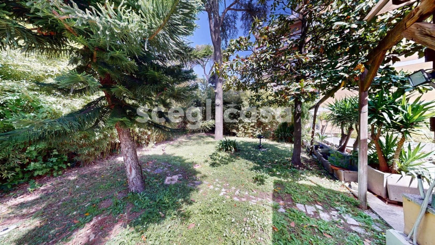 Il giardino, che si trova al primo piano rispetto alla strada, costituisce un’oasi privata di 900 mq, suddivisi tra aree pavimentate e spazi verdi. Impreziosito da eleganti bamboo dorati, che fungono da frangivento naturale, mentre alberi imponenti come pini e magnolie offrono ombra e fascino. Nespoli del Giappone, insieme a yucca e palme nane, aggiungono un tocco mediterraneo ed esotico.