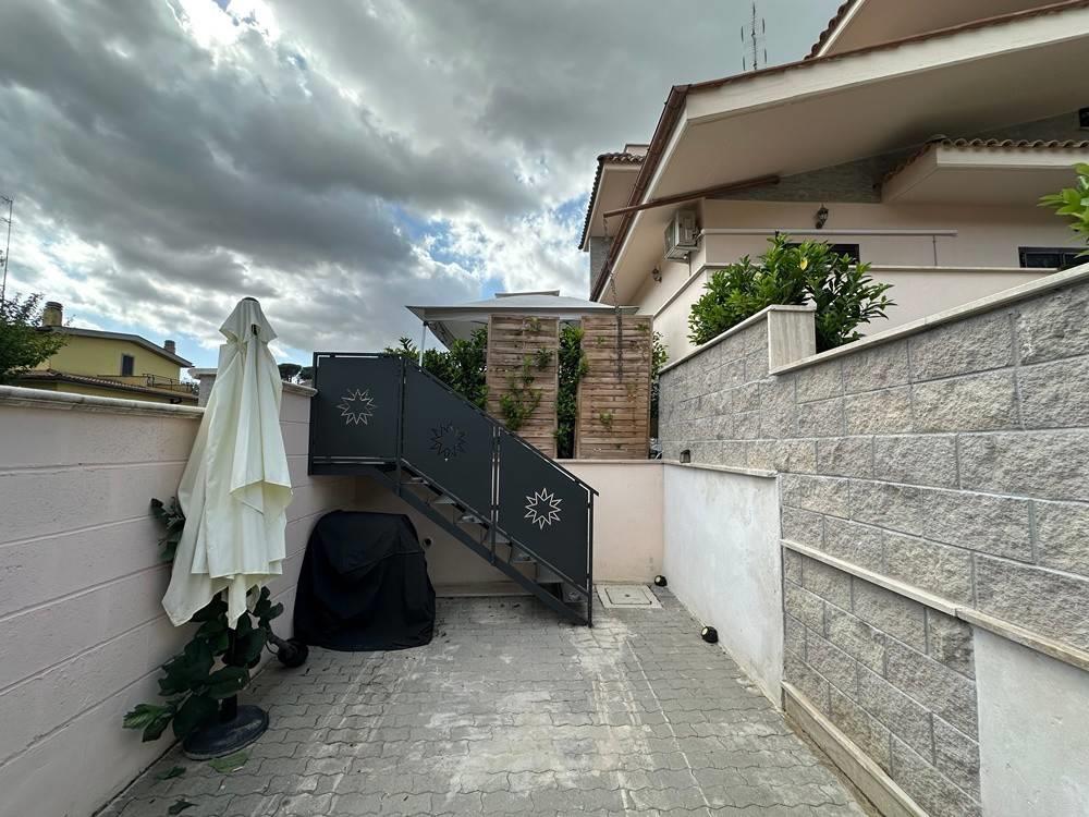 Casalotti / Selva Candida; Precisamente in via Rimella, proponiamo in vendita una porzione di villa quadrifamiliare angolare di 160 mq interni, recente costruzione (luglio 2022) quindi pari al nuovo, entrata privata, disposta su tre livelli attualmente divisa in due unita abitative indipendenti, (ripristinabile) composta da due saloni, due angoli cottura, tre bagni e tre camere da letto. Giardino di circa 150 mq in parte pavimentato, ampia terrazza portico e cantina. L'immobile e dotato di pannelli solari/fotovoltaico essendo una Classe energetica A/1, infissi doppio vetro, termo-autonoma, grate di sicurezza con zanzariere. Dispone inoltre di un posto auto interno di proprietà e due posti auto condominiali. Per info o appuntamenti contattare FIBA IMMOBILIARE 06. 83086338 -3927673124 - Seguici anche su Instagram @fibaimmobiliare. Mutuo in sede con i nostri consulenti del credito.