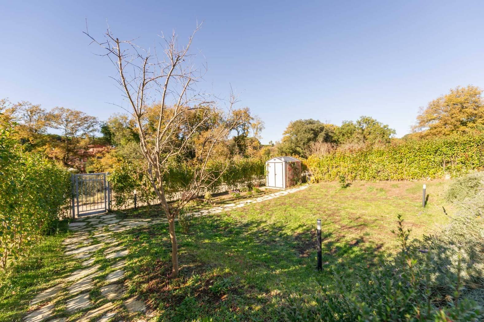 Extra inclusi: Impianto di irrigazione a goccia con cisterna da 3.000 litri (recupero acque piovane) e un pratico capanno per ricovero attrezzi, ideale per mantenere l'ordine degli spazi esterni.