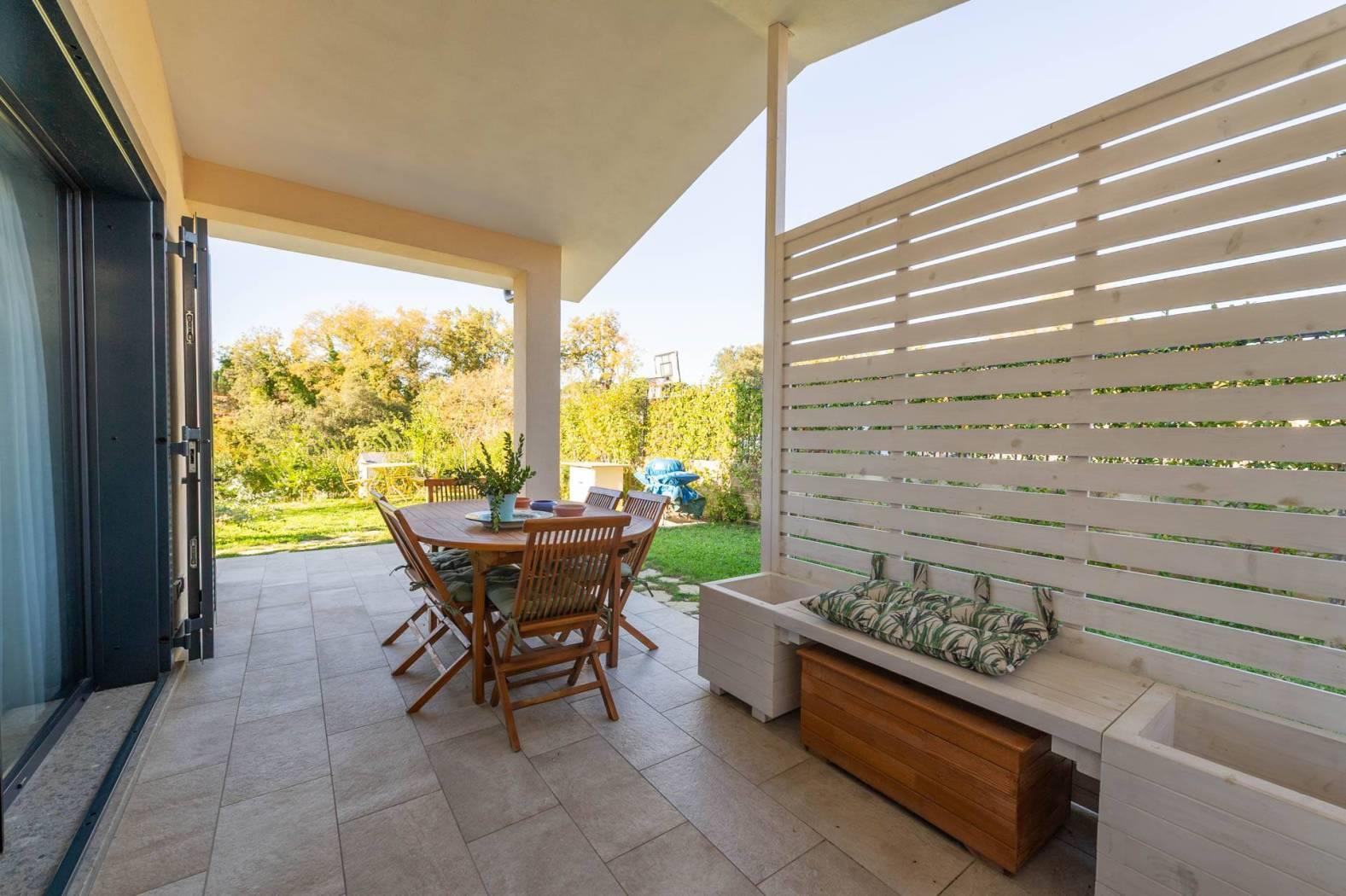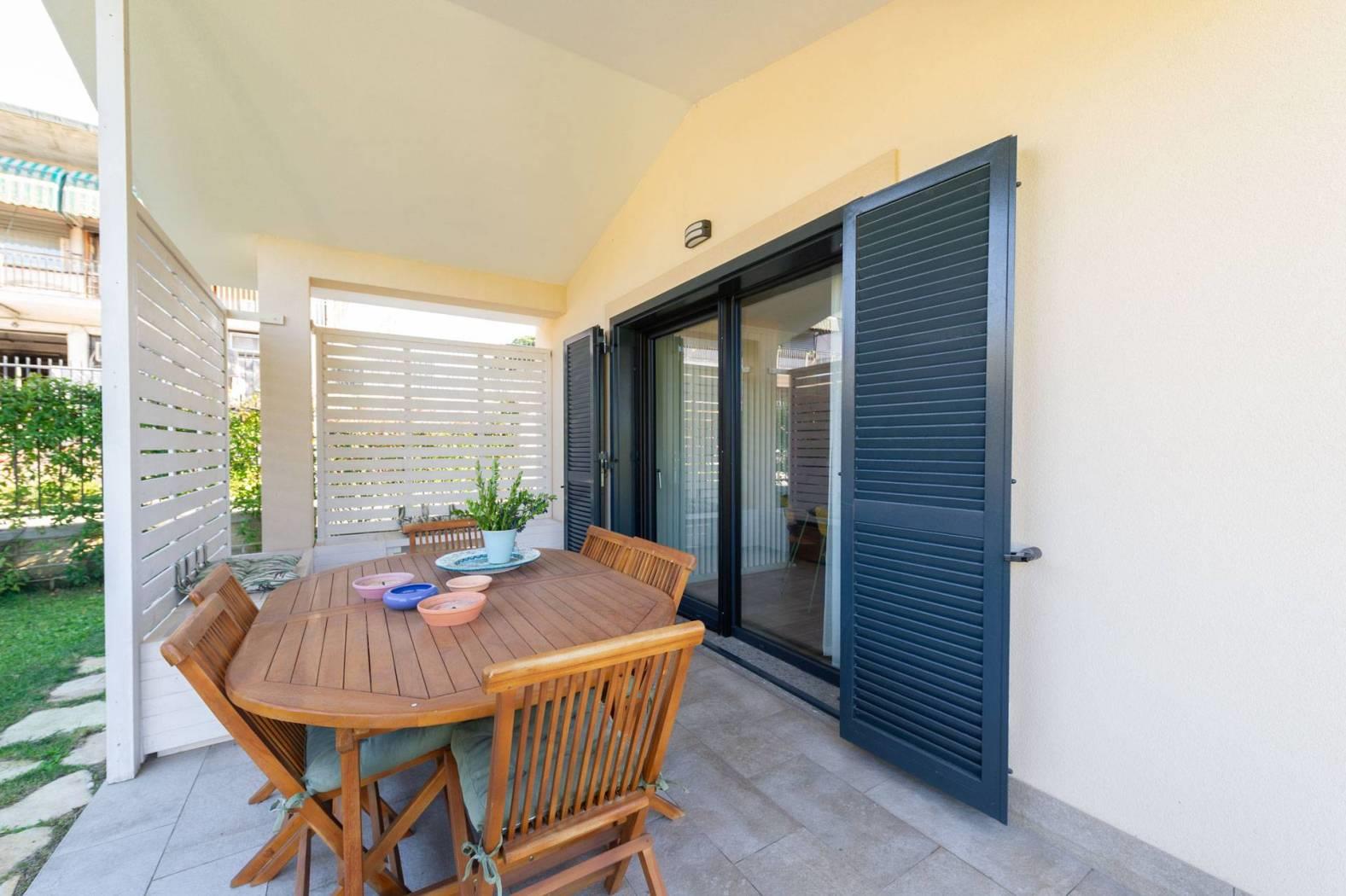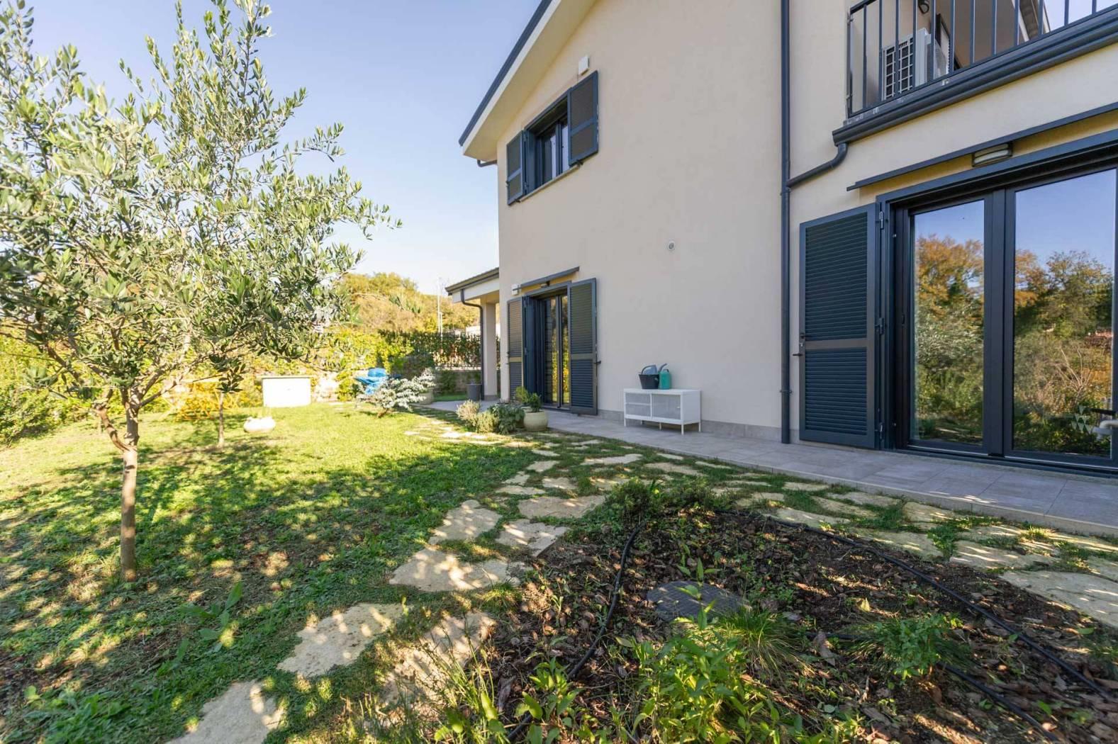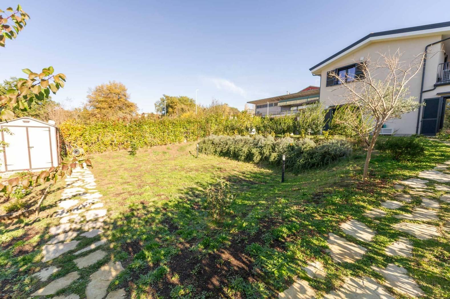 IL GIARDINO E GLI ESTERNI: 400 mq di oasi privata curata nei minimi dettagli, con siepi e manto erboso. A differenza di lotti grezzi, qui troverai un terreno già completamente sbancato a gradoni, predisposto per piscina fuori terra e arricchito da alberi da frutto.